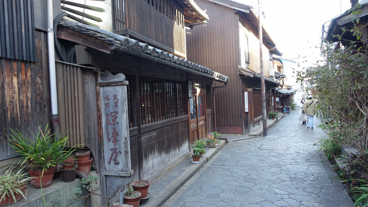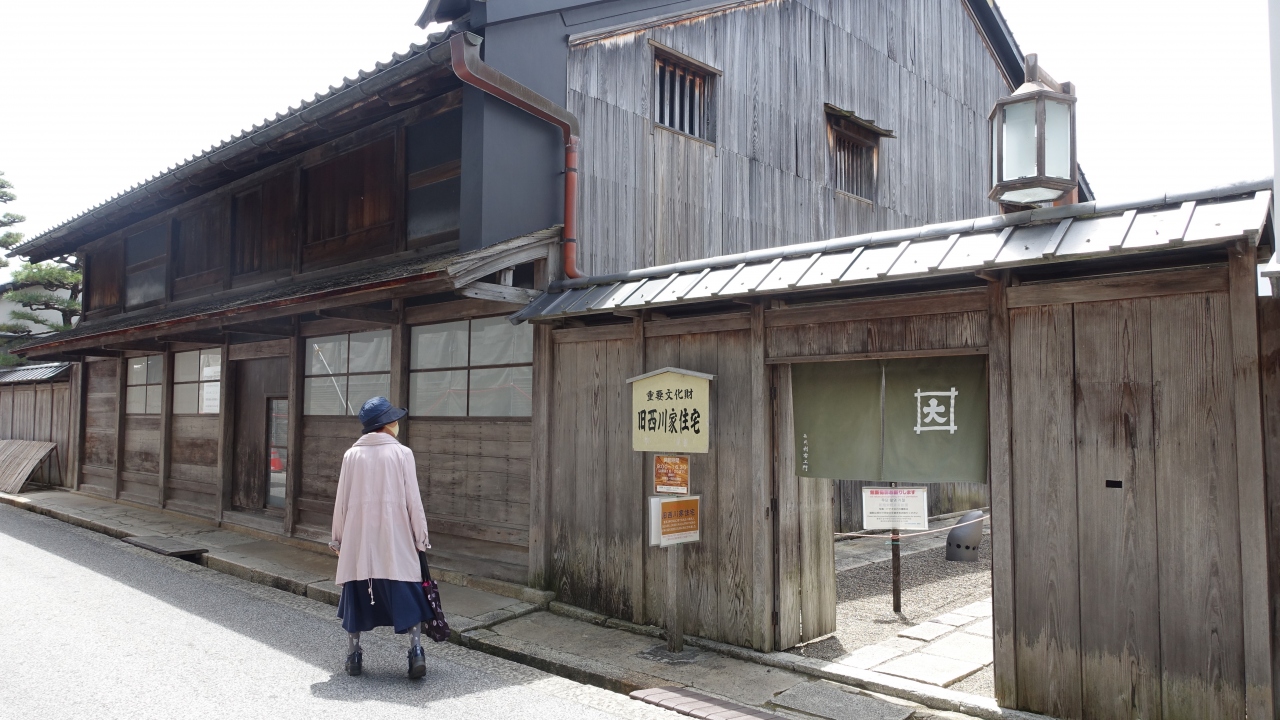 西川利右衛門は蚊帳(かや)や畳表などを商い財をなし、近江を代表する豪商としての地位を築いた。主屋は宝永3(1706)年の建築で昭和60年に復元されたもの。三和土に入ると重厚な店構え。屋号「大文字屋」を示す暖簾がかかり、高い天井には太い梁が使われている。室内は近江商人らしく質素だが洗練された感じで、庭園の奥には近世としては珍しい3階建ての土蔵がある。- 旅行時期