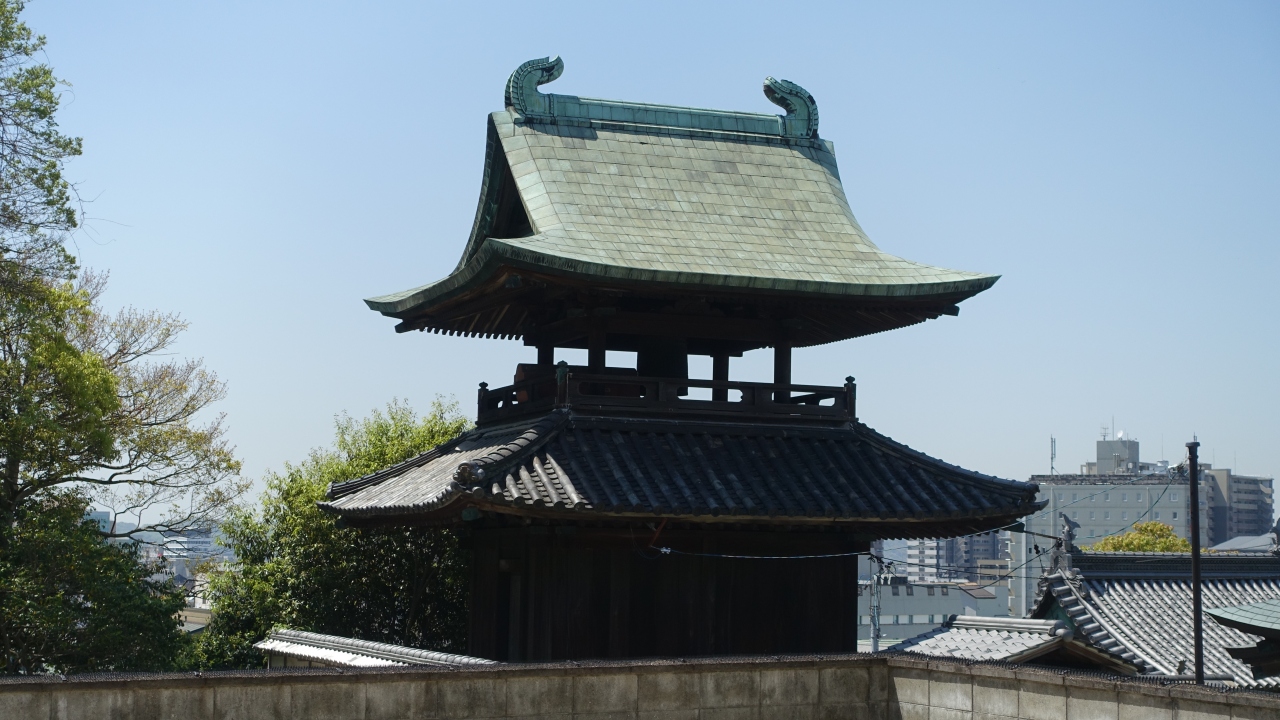 観龍寺の創建は平安時代の寛和元年(985年)と倉敷で最も古い寺の一つで、堂々とした本堂は江戸時代半ばのもの。幕末に長州の奇兵隊が倉敷代官所の襲撃してこの寺に立て籠ったそうで、山門にはその時の槍傷が残っている。境内の外には江戸時代中期の大きな鐘楼があり、村に時間を知らせるために住民が交代しながら鐘が鳴らされていてことから、「時の鐘(かね)」と呼ばれていた。- 旅行時期