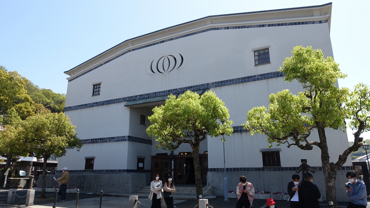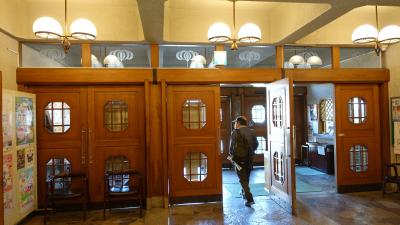 倉敷美観地区のほぼ中央にある倉敷公民館は、大原総一郎氏の寄付をもとに昭和44年に建築された。入口は倉敷をイメージした門長屋様式だが内部は洋風のレトロモダンな意匠。