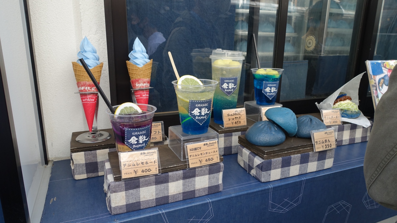 国内で初めて本格的なデニム生地を作ったのは、倉敷市中心部にあったクラボウ(倉敷紡績)だった。そのため美観地区にはデニムをテーマにした施設がいくつかある。クラシククラフトワークビレッジはジーンズを中心にした衣料店が並んでいるのに対し、倉敷デニムストリートには小間物店や飲食店が並んで、中はデニム色の茄子紺一色。デニム色のソフトクリームやハンバーガー、アンマンが並んでいたが、個人的にはあまり食欲をそそらなかった。