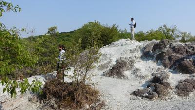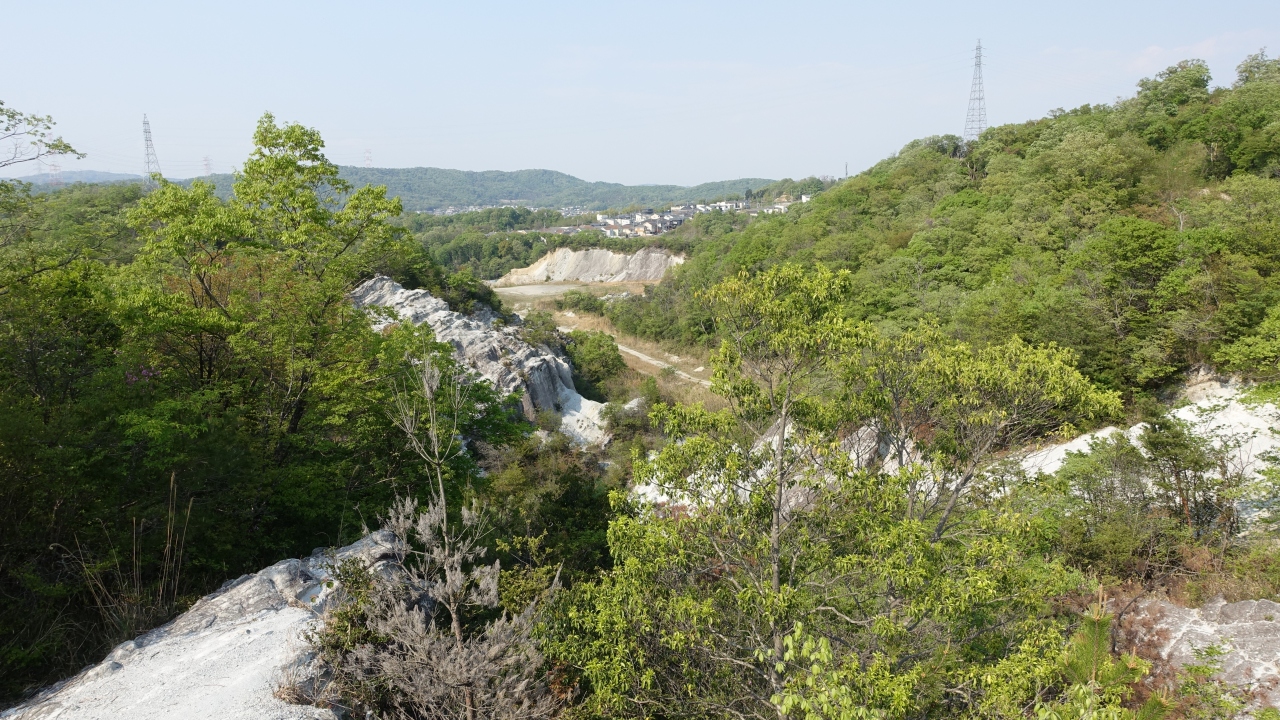 屯鶴峯は二上山の火山活動で水底に沈積した火山岩が隆起し、風化を受けて形成された奇岩。遠くから見ると鶴が屯(たむろ)しているように見えることから名付けられた。二上山一帯はかっての火山と思われないほど穏やかな地形で、屯鶴峯も白いむき出しの岩肌と周囲の樹木の緑が美しい風景をつくっている。今でも風化が進んでおり上り下りするのは危険。
