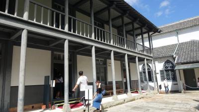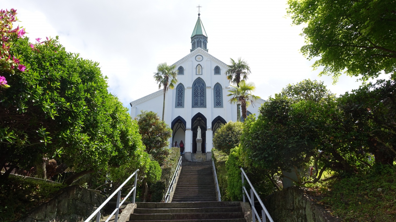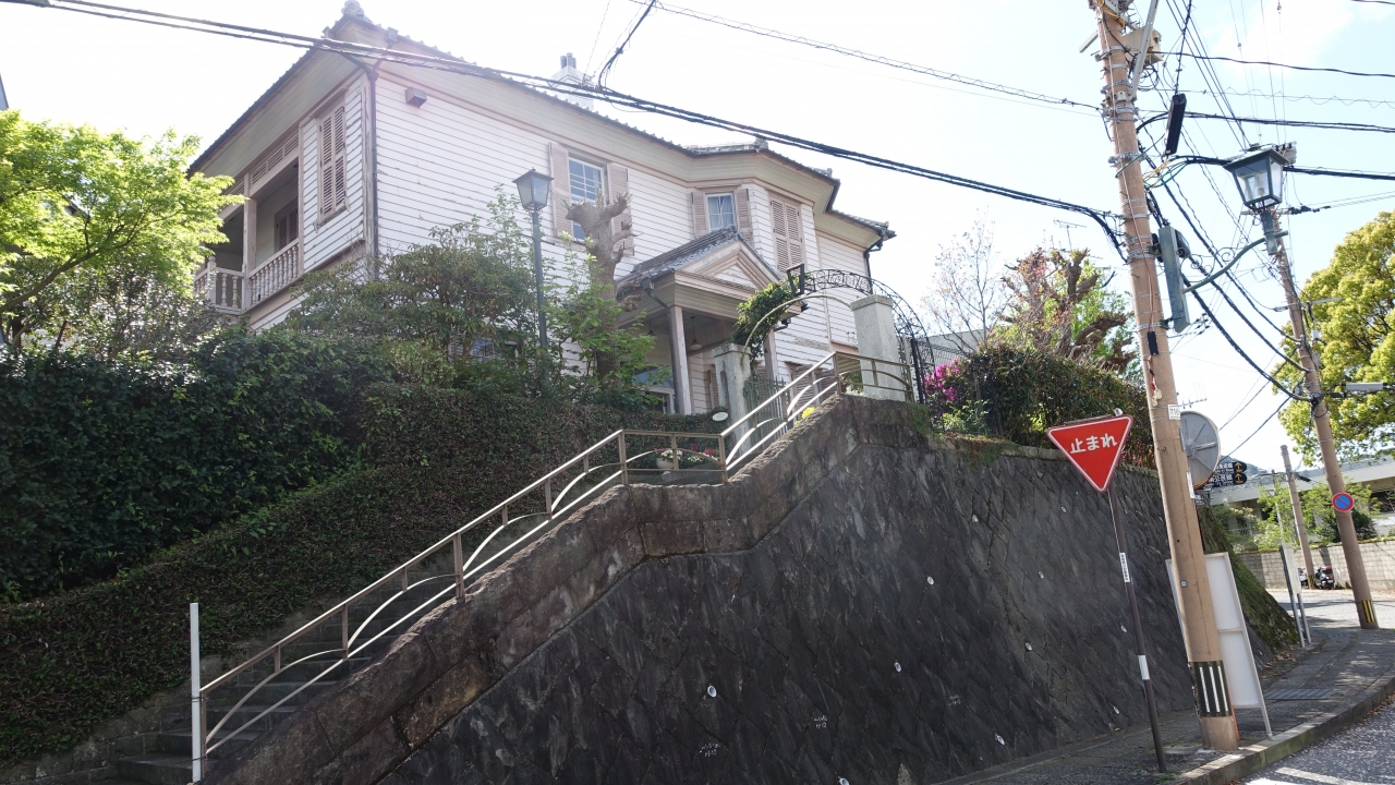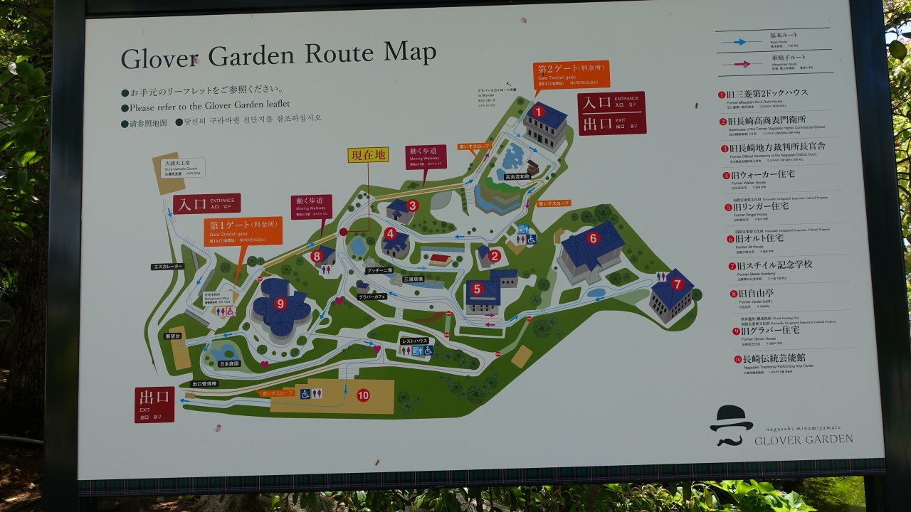 明治の居留地時代の長崎の洋館を集めたテーマパークで長崎随一の観光名所。小高い丘の西斜面を利用して居留地時代の古い洋館や施設が配置されている。西側の展望も素晴らしく、長崎湾を隔てた対岸の三菱重工長崎造船所や稲佐山を望むことが出来る。園内にはエスカレータがあり足の弱い高齢者でも負担なく観光できる。入口は上下2か所あるり、上の入口へは石橋電停から斜行エレベーター「グラバースカイウォーク」を使うと簡単に行ける。入場料620円は内容から考えるととてもお得。