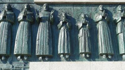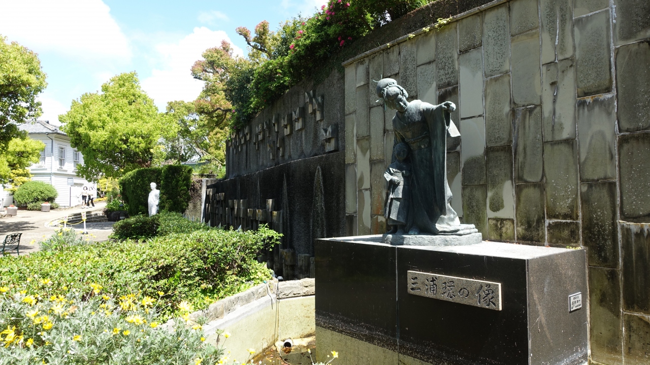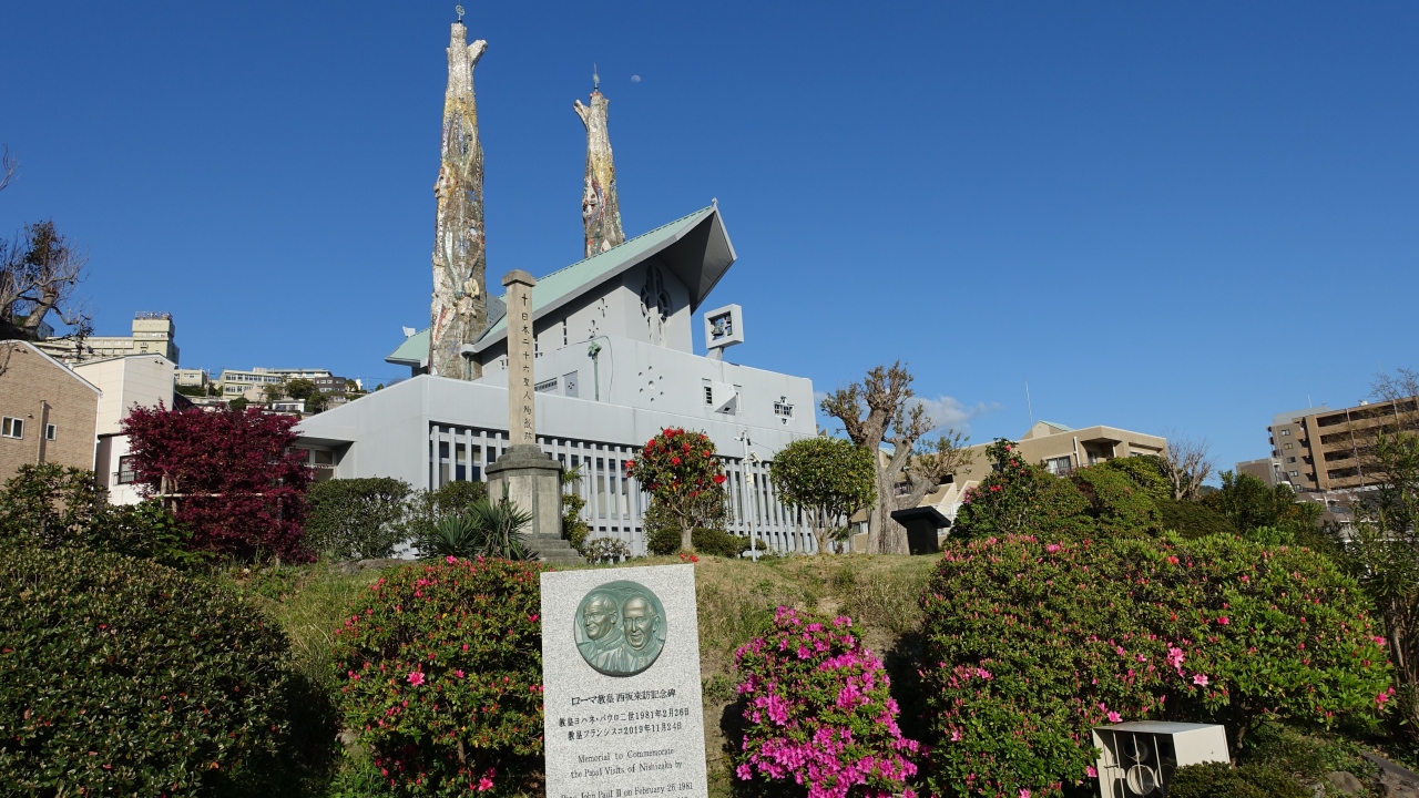 長崎駅前広場から住宅街の坂道を500mほど上ると二十六聖人殉教地がある。辺りは公園として整備され記念館が併設されている。キリシタン26名は秀吉の命で京都で左の耳たぶを切り落とされ、市中引き回しとなったうえ、歩いて長崎へ向かわされ、この地で処刑された。26人の中にはわずか12歳の少年ルドビコ茨木も含まれる。
