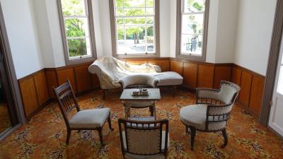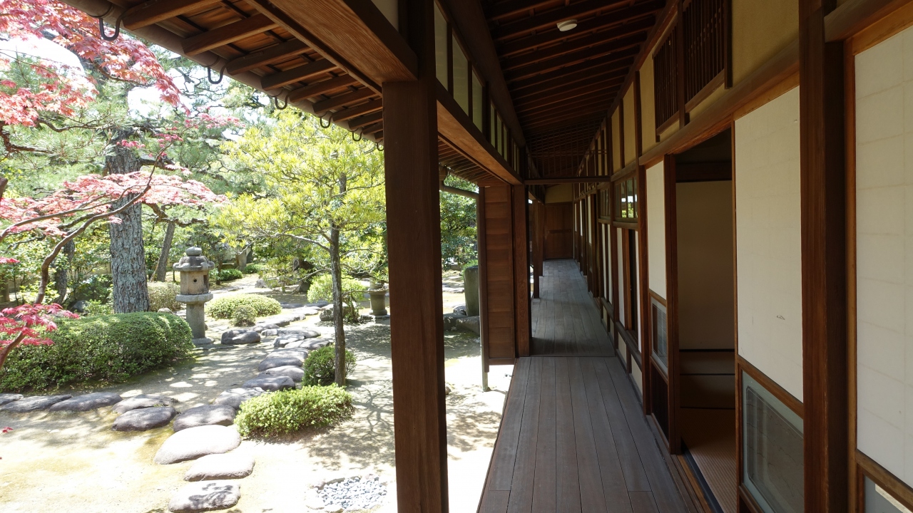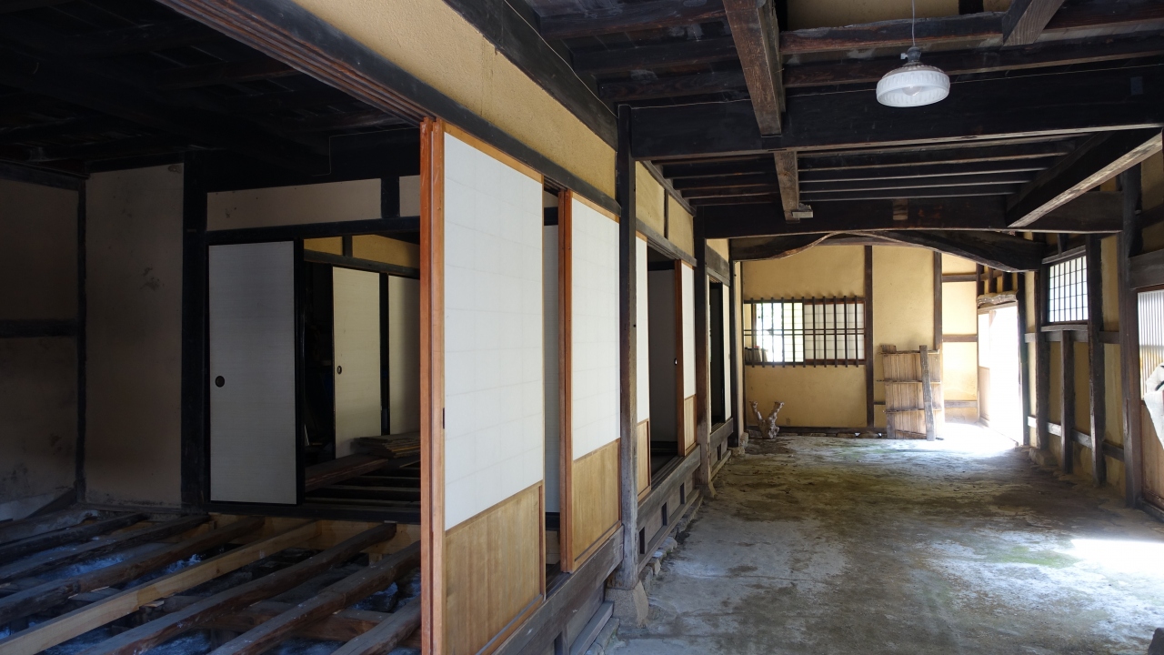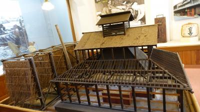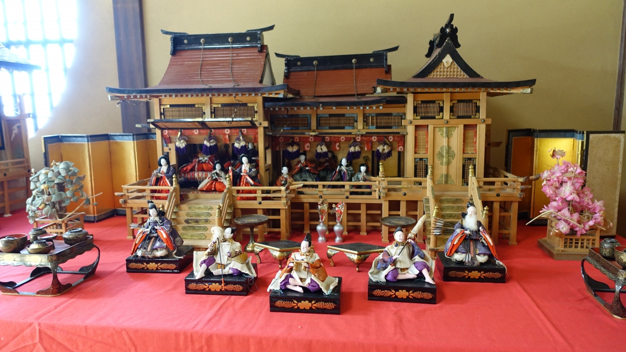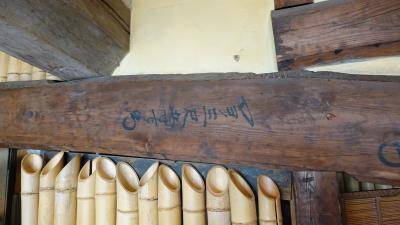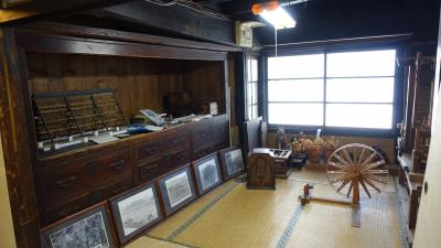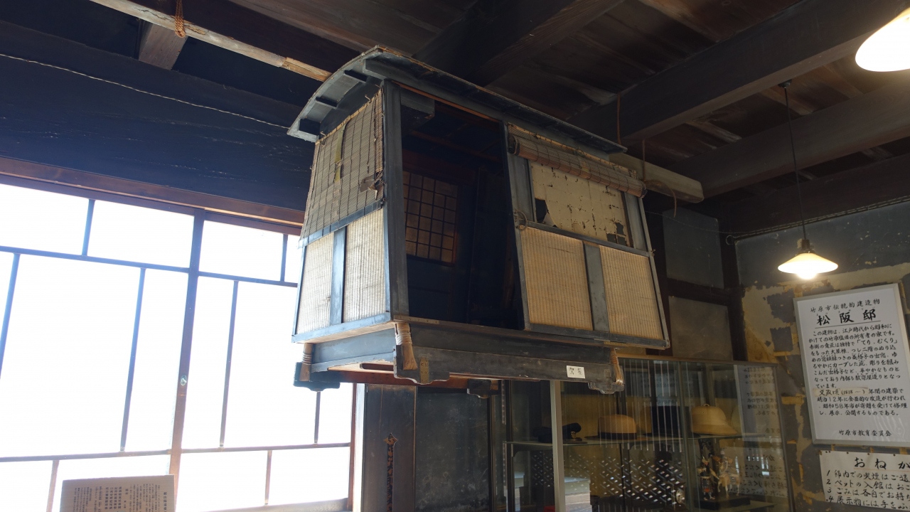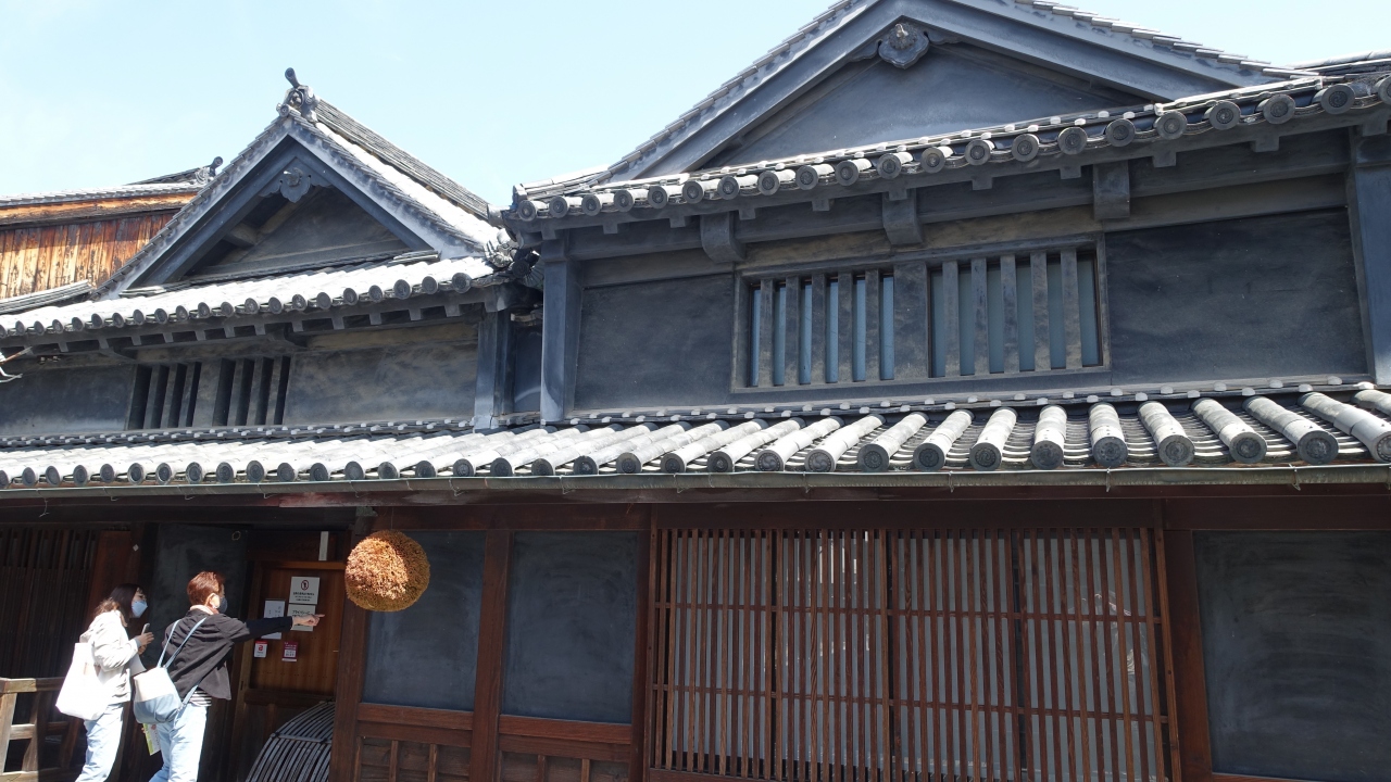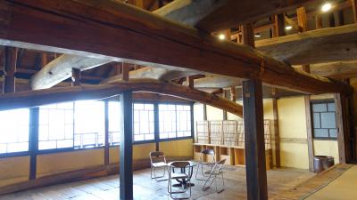道の駅から重伝建地区に入ると直ぐに瓦葺の大屋根をもつ2階建ての豪壮な町家が目に入る。塩田経営者のだった笠井家の家として明治5年に建築されたもので無料開放されている。。塩田経営者は「浜だんな」と呼ばれたそうで、内部には製塩に関する資料や時代物の御殿雛が展示されていた。2階は通りに沿って全面ガラス窓で、正面に真っ直ぐ本町通が伸びて両側に並ぶ美しい家並が見える。天井は太い梁がむき出しで組まれ、梁には組み上げた時の目印と思われる古い墨跡が残っている。