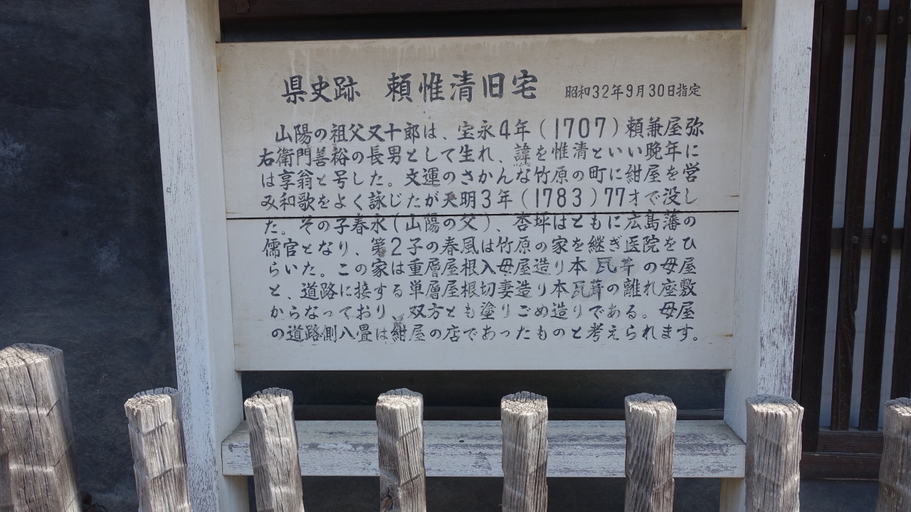産業の隆盛とともに豊かな文化が生まれる。この町は朝ドラで有名になった「マッサン」こと竹鶴政孝、江戸時代の学者頼山陽、所得倍増を掲げて高度成長の先駆けとなった池田勇人首相など、この町は多くの人材を輩出している。- 旅行時期