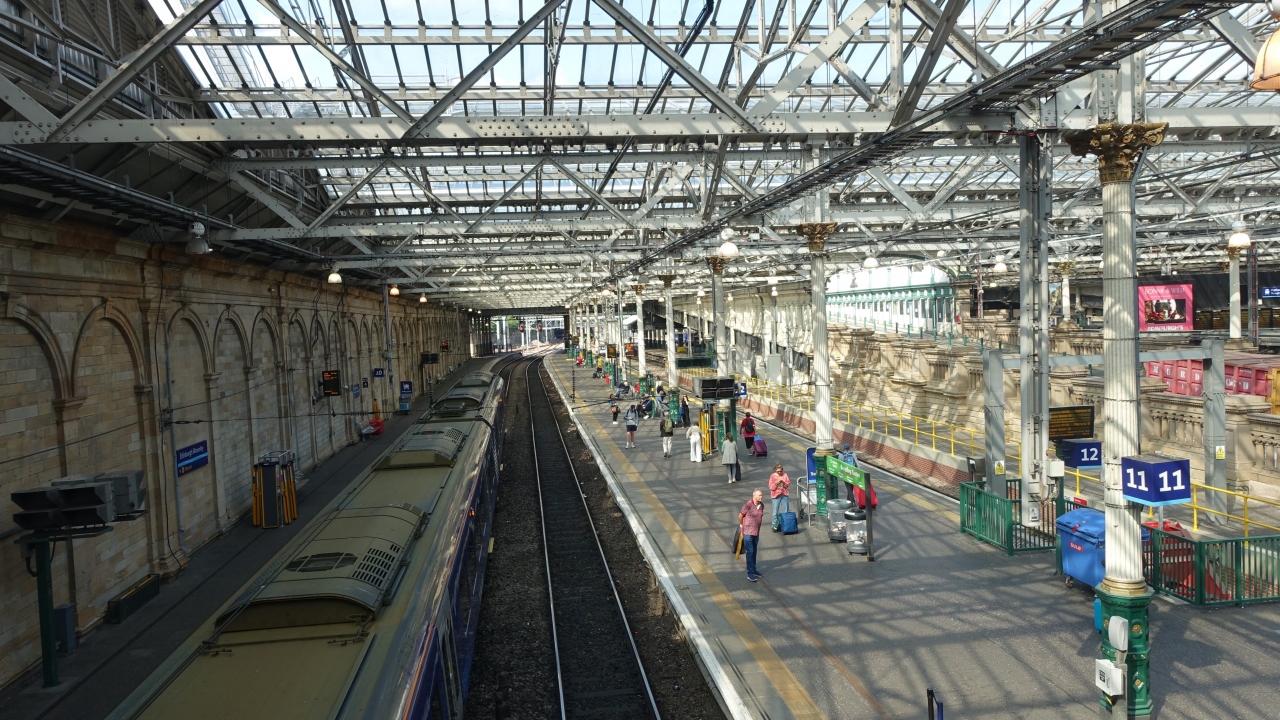 スコットランドの玄関口にあたる駅で、ロンドンを始めイングランドの主要都市やからの長距離列車を含め多くの列車が発着する。観光客の数も圧倒的に多い。駅は旧市街と新市街の間の谷間の隠れたような場所にあるため、駅舎の外観は主要駅としてはとてもシンプル。駅からCloseを上ると旧市街の中心ロイヤルマイルに出る。