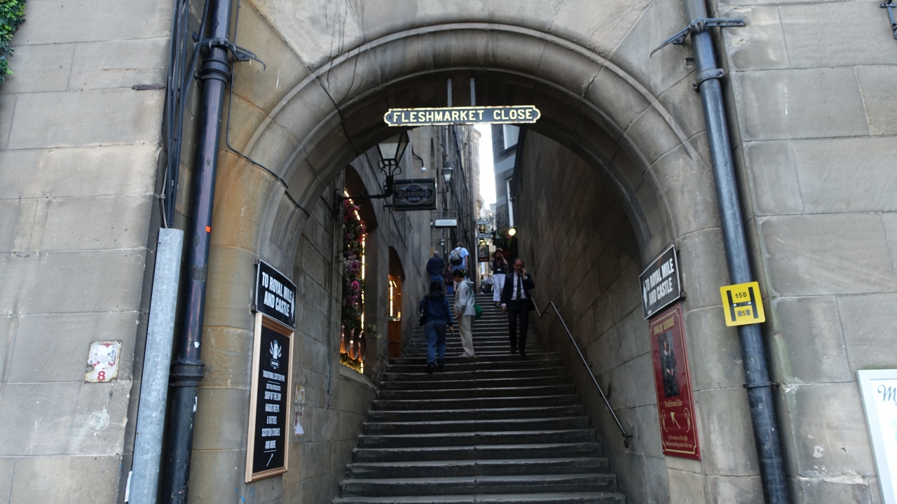 ロイヤルマイルはエジンバラ城が高い場所にあるため、ホリルードハウス宮殿までは緩やかな下り勾配になっている。旧市街自体が高い場所にあるため、並行する道路との間はCloseと呼ばれるの狭い階段や路地で結ばれている。Closeを上り下りしながら目抜き通りと裏通りを行き来するのも面白い。- 旅行時期