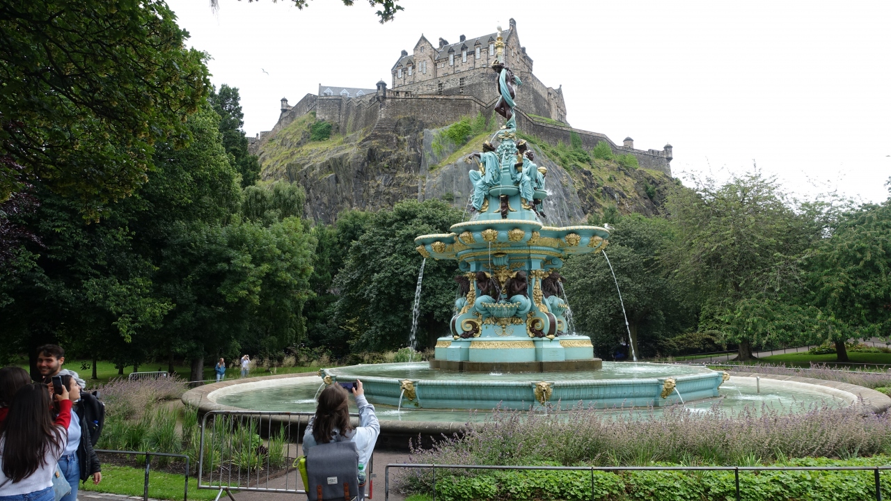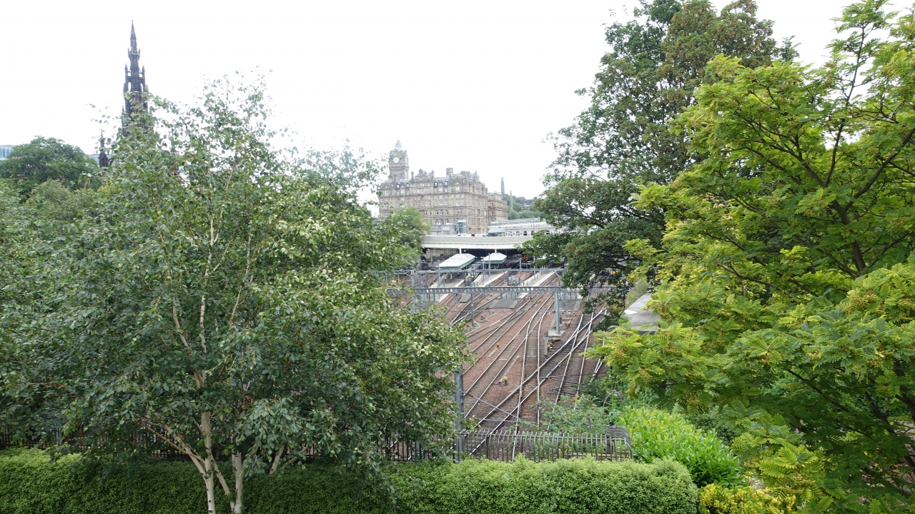 プリンセス ストリートに沿って一段下がった場所にある緑豊かな庭園 で、1820年にエジンバラ城の堀を埋め立てて築かれた。東西に細長い庭園内には花壇の他に花時計、噴水塔、野外ステージがあり市民の憩いの場になっている。ここから見上げるエジンバラ城や旧市街の眺めは素晴らしい。