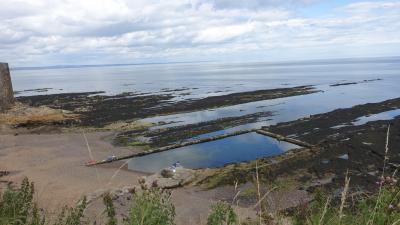 セントアンドリュース大聖堂から海岸沿いの道をゴルフ場に向かって歩くと、北海に面した断崖の上にセントアンドリュース城がある。元々は司教の館だったが、イングランドとの戦いの間に強固に要塞化された。陰湿な地下牢が残っているらしいが内部は見学していない。隣接してビジターセンターもある。