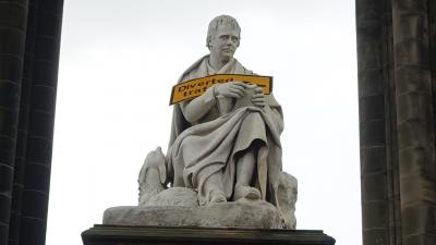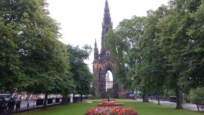North Bridgeからすぐのプリンスィズ・ストリートの横に建つ存在感十分の記念塔。歴史小説で名声を博したスコットランドの作家サー・ウォルター・スコットを讃えたもので、教会の尖塔を思わせる塔の高さは61mと作家の塔としては世界最大。白いスコットの像は塔の中の見える高さに鎮座している。入場料を払えば塔の上まで登れる。