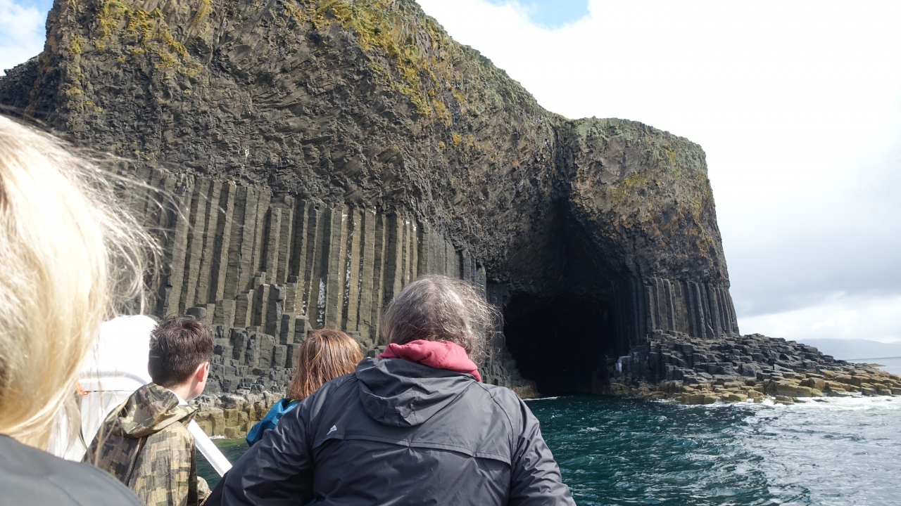 フィンガルの洞窟のあるスタッファ島は島全体が六角柱の玄武岩の柱状節理で出来ており、世界遺産に指定されたアイルランドの「ジャイアントコーズウェイ」に勝るとも劣らない景観である。