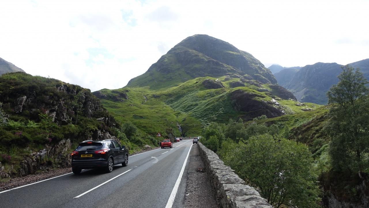 迫力ある山と渓谷が続くグレンコーの中でもスリーシスターズは代表的なビューポイント。名前の通り3つの山が連なり、標高は1000m程度と決して高くはないが、岩が露出している山頂部から緑草がベールのように包む中腹から谷、その間を流れ落ちる滝の雄大さは感動もの。氷河が造ったダイナミックな造形である。谷底は緩やかな起伏で散策にもってこいだが、頂上を目指すのはとても大変で熟達者のルート。