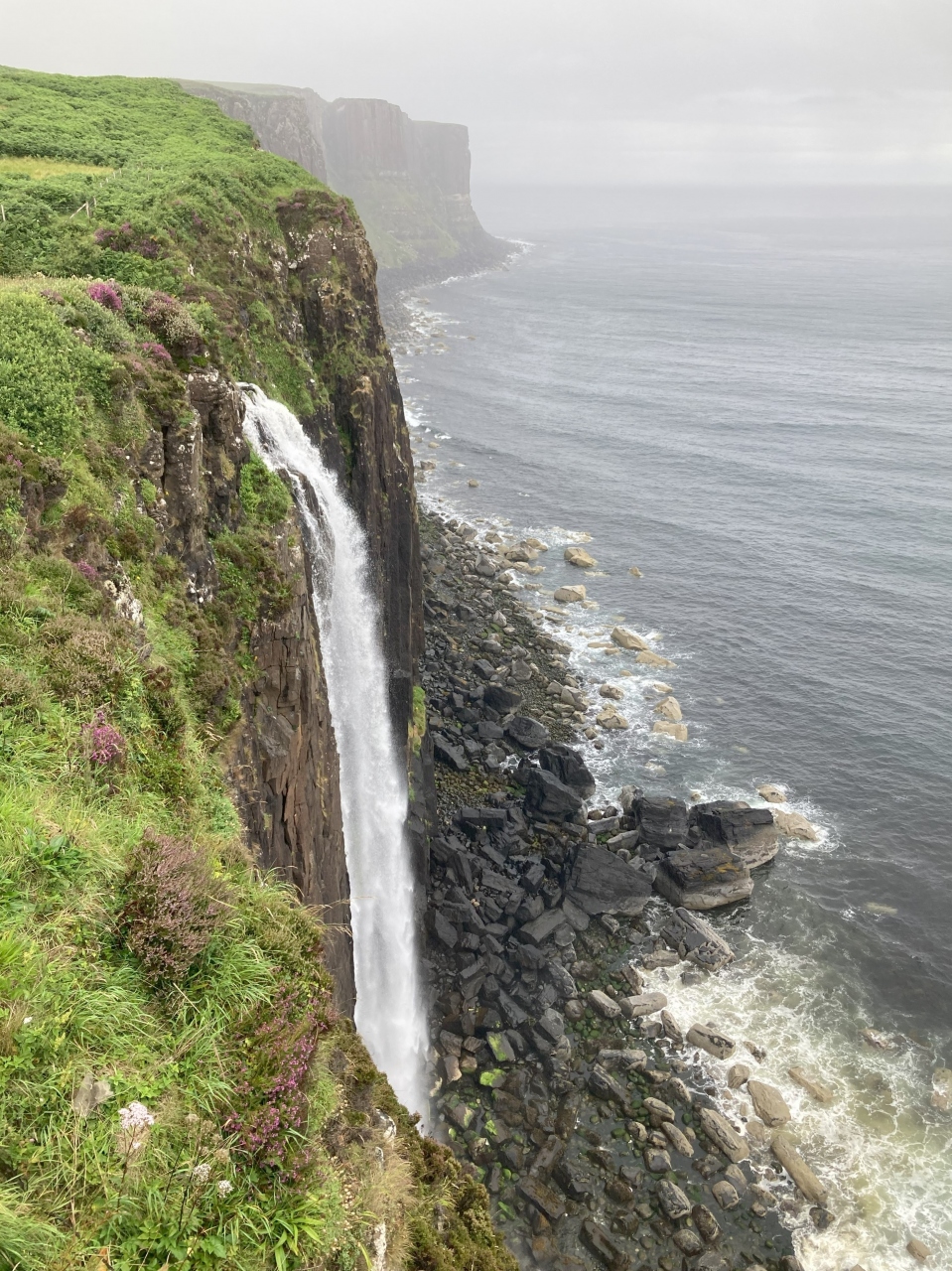 Kilt Rock Waterfall はOld Man of Storr と共に、スカイ島を代表する景勝地。ポートリーからバスで30分、バスは途中でOld Man of Storrを通るので2か所セットで訪れると効率的。