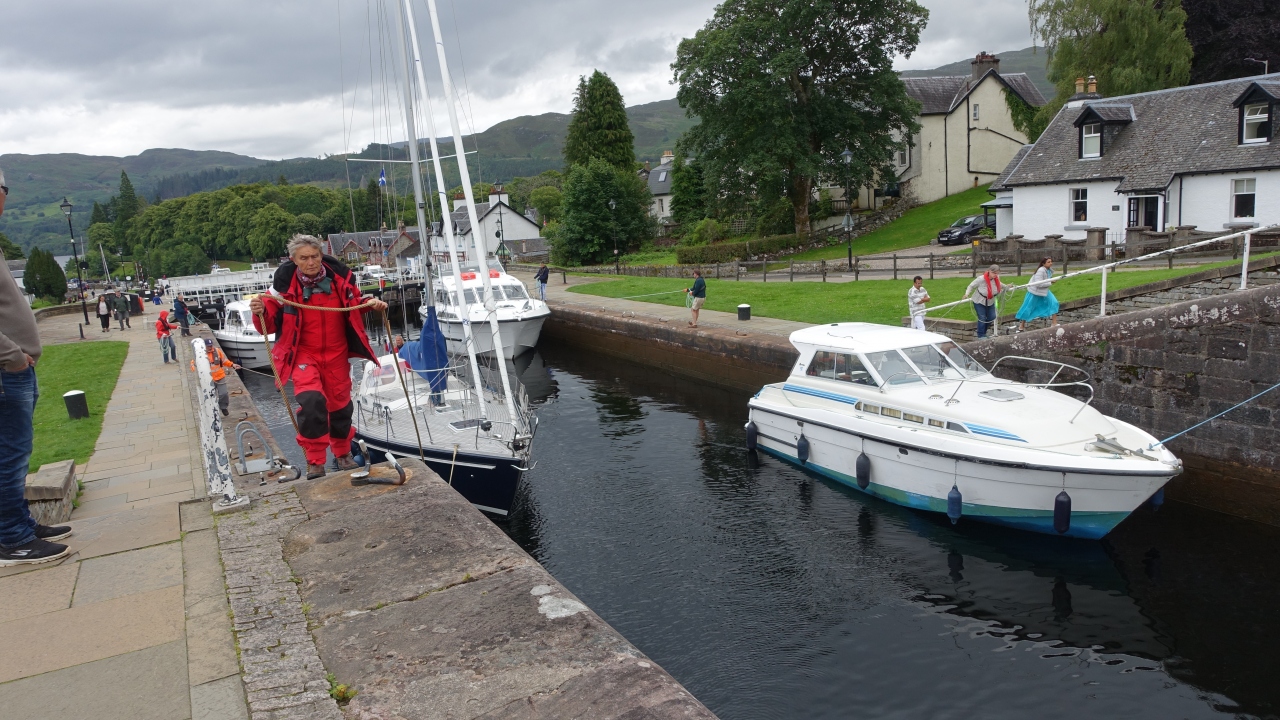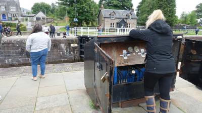 カレドニア運河は自然の湖と人口の水路を組み合わせ、スコットランド東海岸のインヴァネスと、西海岸のコーパッハを繋いでいる。完成したのは19世紀で、ネス湖の南口にあたるフォートオーガスタではロックゲートを見ることが出来る。高低差のある運河を、幾つもの水門を順番に開閉させながら水位を調整して船を航行させる仕組みで、動きをすぐ傍で見ることが出来る。ロックゲートの下流は広大なネス湖に繋がっていて、湖畔に下りることが出来る。