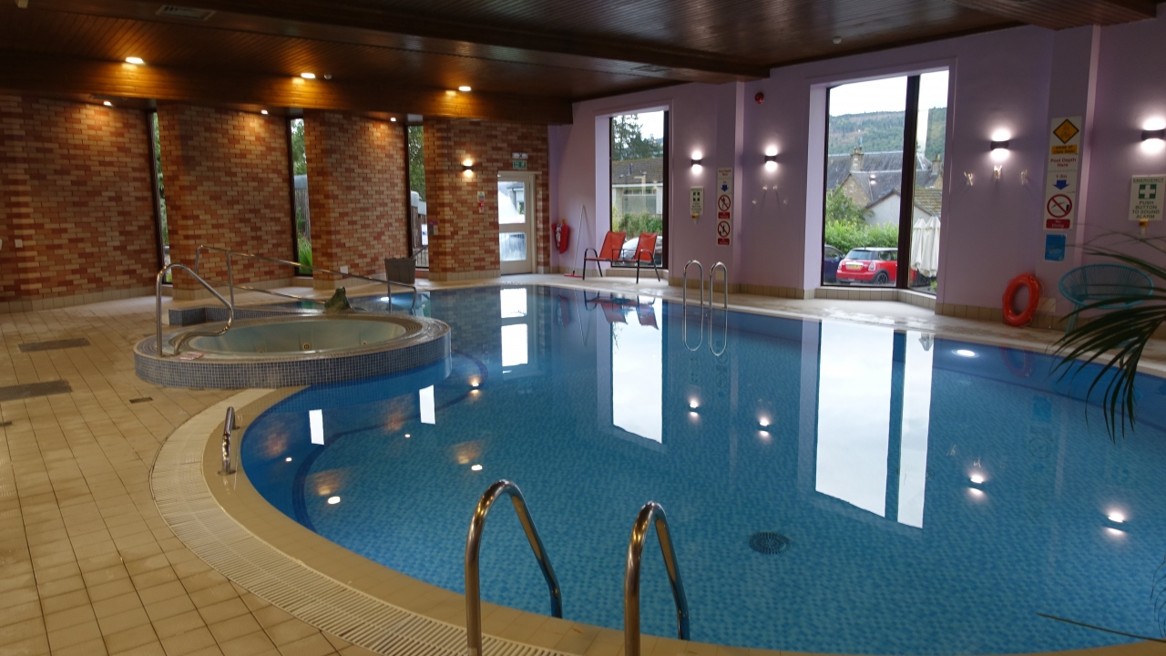 ピトロッホリー駅から徒歩5分、町の中心にある三ツ星ホテル。建物は20世紀初頭に建てられたヴィクトリア様式で尖塔の上にスコットランド国旗がはためく。館内は古い木材が随所に使われ歴史を感じる。ここにはプール、サウナ、トレーニングジムが併設され観光の合間にリラックスできた。