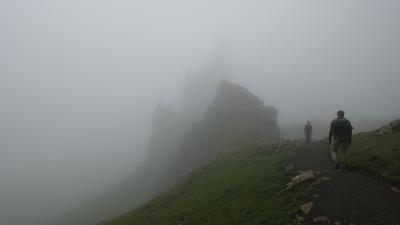 スカイ島は「霧の島」とも言われ、天気の変化が激しいので雨具は必携。あっという間に雲がかかり視界を遮ることもあるが、しばらく待つと雲が切れることも多い。- 旅行時期