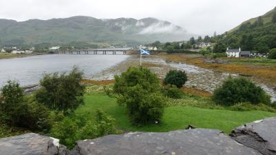アイリーン ドナン城はスカイ島の入口の町カイル・オブ・ロハルシュ近くにある古城。陸地に深く入り込んだ入江の浅瀬の小島に建っていて、あたかも海に浮かんでいるように見える。城は800年前に建設されたが、18世紀のジャコバイト反乱に与したため政府軍に破壊され、現在の形に修復されたのは20世紀になってから。天守閣にあたる居館内は撮影禁止だが大して印象に残る展示品はなかった。この城はスコットランドで最も美しい城と言われる通り、外観を周囲の自然風景と合わせて眺めるのがいい。