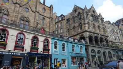 ここからロイヤルマイルに至るウェストボウ通りとビクトリア通りには、19世紀に建てられたカラフルな建物とその上に建つ重厚な石造りの建物が続き、ことのほか美しい。- 旅行時期