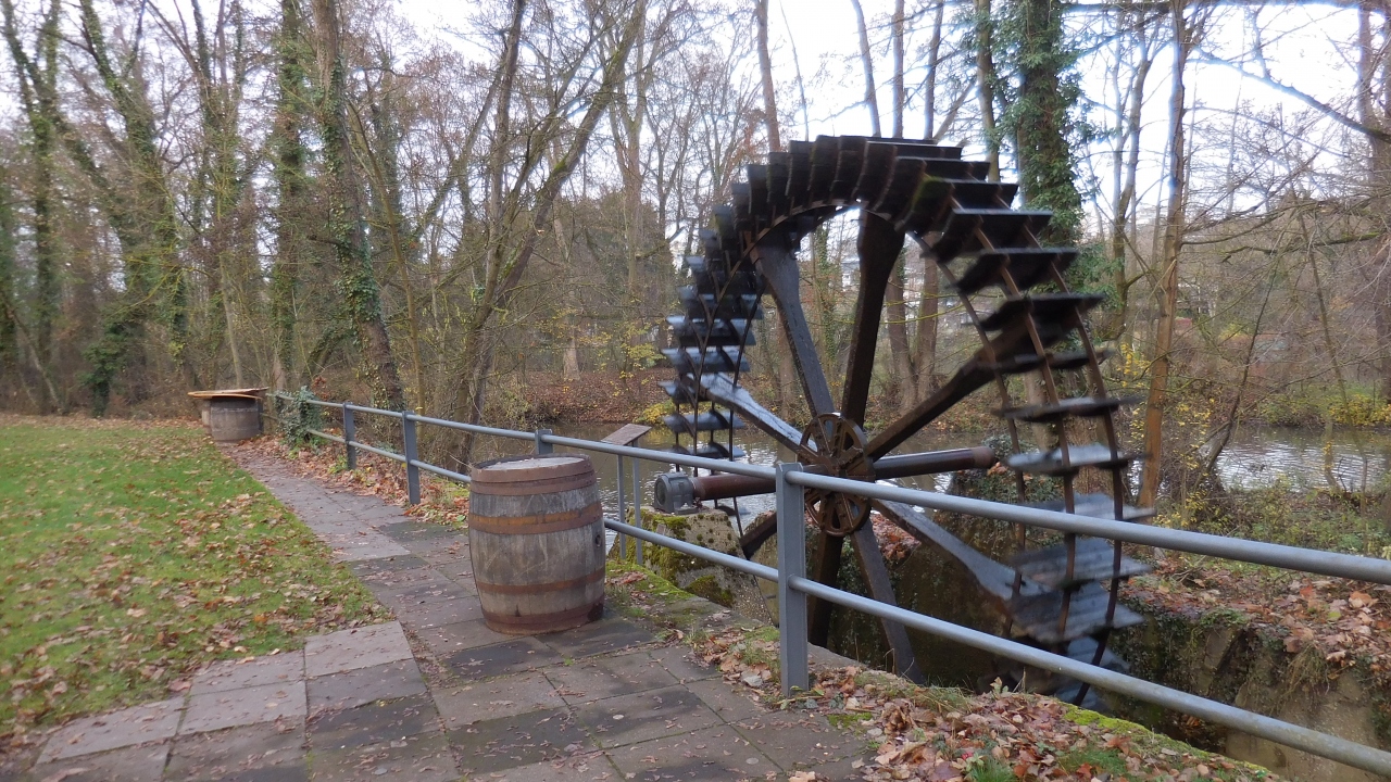 マリエンカペルからマイン川の川岸に出て右手を見るとどっしりしたクレーンが見える。石の台座に乗って2本のクレーンアームを広げた姿は武骨だが妙に絵になる。クレーンの石の台座に掘られた彫刻から、マイン川の水運で栄えた昔が偲ばれる。