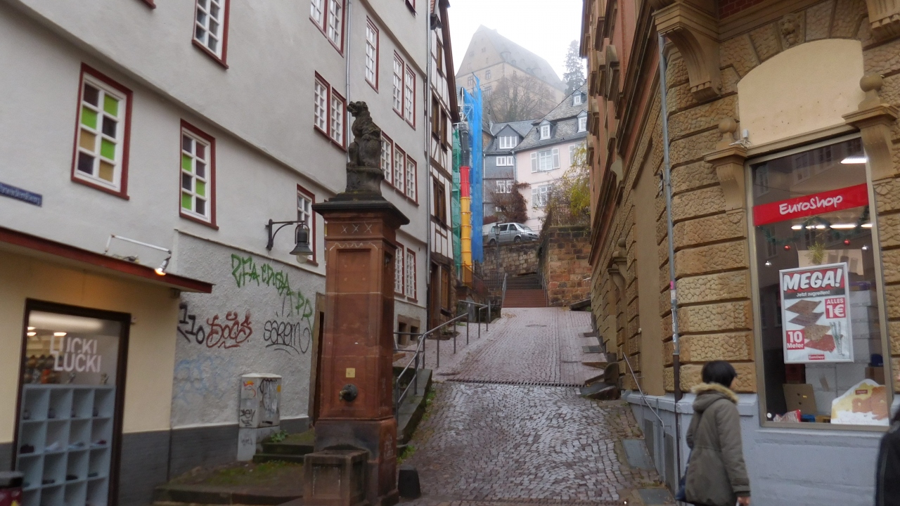 ヴェッツラー駅から旧市街まではバスもあるが、バーンホッフ通りの市場を覗き、ラーン川の風景を楽しみながら歩いても20分程度である。- 旅行時期