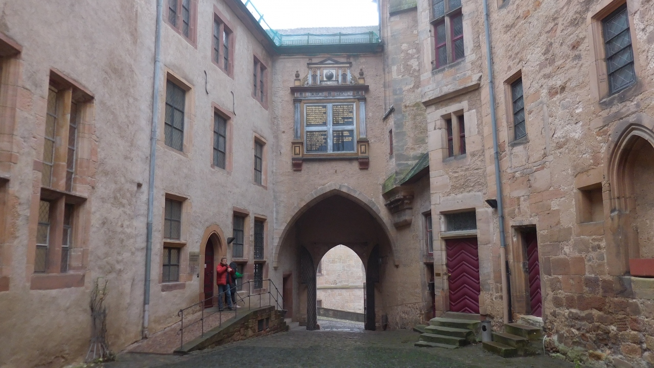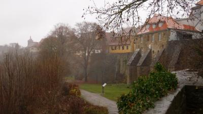 城に行くにはマルクト広場の奥の市博物館になっている木組みの家の横の細い道を登ると城壁の一部だった塔の門があり、ここをくぐって道なりに登っていくと7~8分で到着する。- 旅行時期