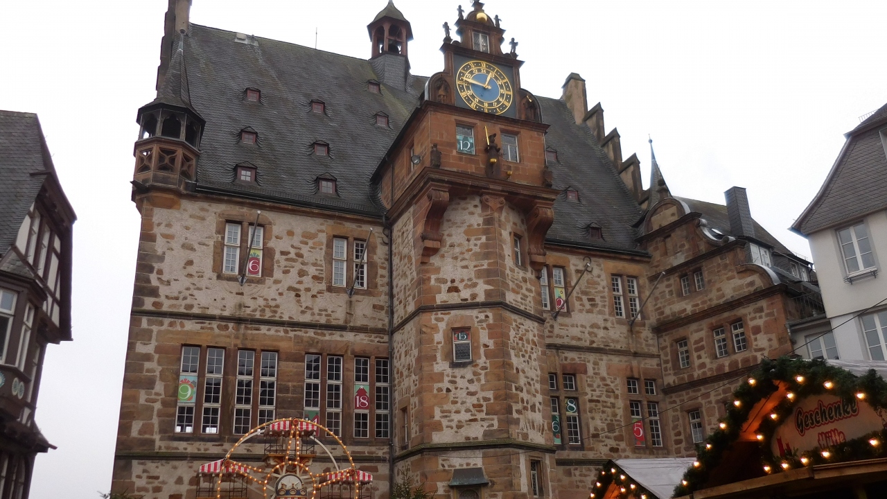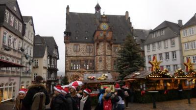 市庁舎は街の規模からしたら意外なほど小さいが、その分とても可愛くグリム童話に登場するような建物である。特に正面屋根の時計がカラフルで美しく、毎時ラッパが鳴り響くらしい。市庁舎のあるマルクト広場では小さなクリスマスマーケットが開かれていた。