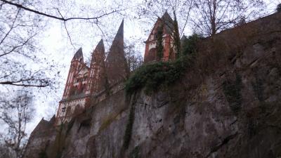 大聖堂は北側のラーン河畔からも見上げるのも素晴らしい。垂直の崖の上に城と大聖堂が建つ姿は迫力があるし、川沿いは水車や堰がある水辺のプロムナードである。- 旅行時期