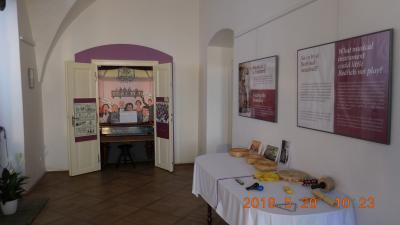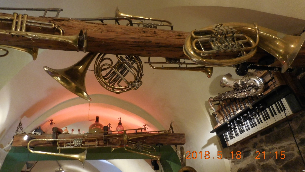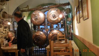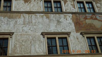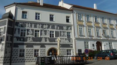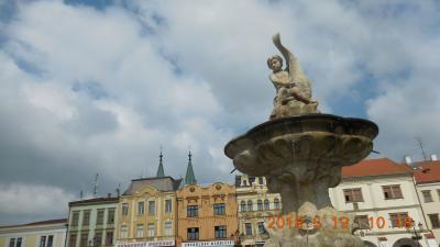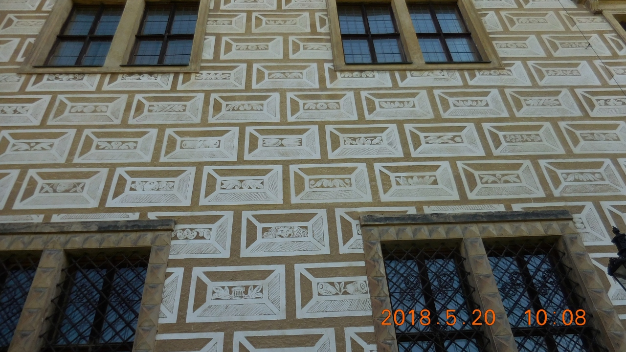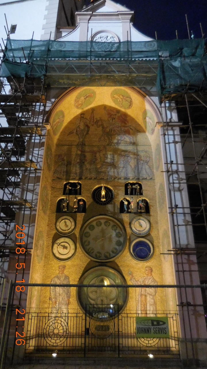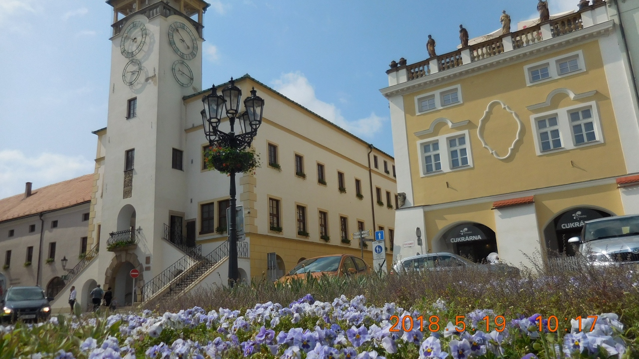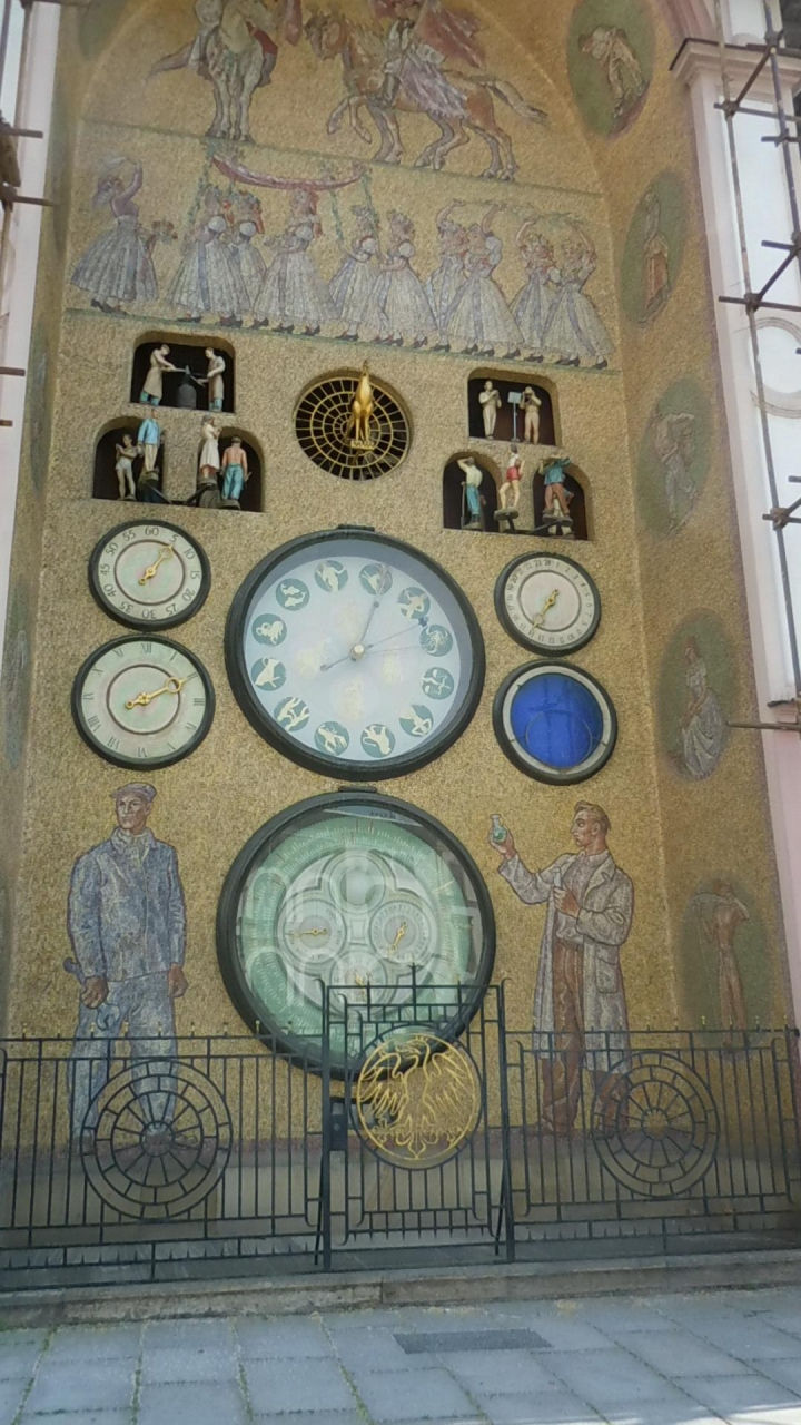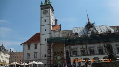 ホルニー広場に建つ市庁舎の塔の基壇に有名な仕掛け時計があります。時間になると人形が動くらしいのですが、見たときは工事中なのか動いていませんでした。時計の横に労働者と科学者の絵があり社会主義時代に描き換えられたようです。プラハ旧市街広場の天文時計も工事中で、今回の旅行では有名な仕掛け時計を全く見れませんでした。