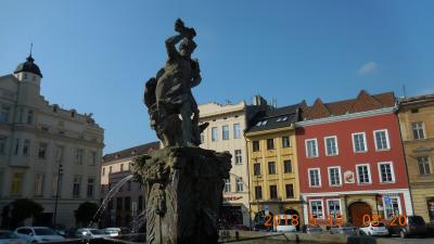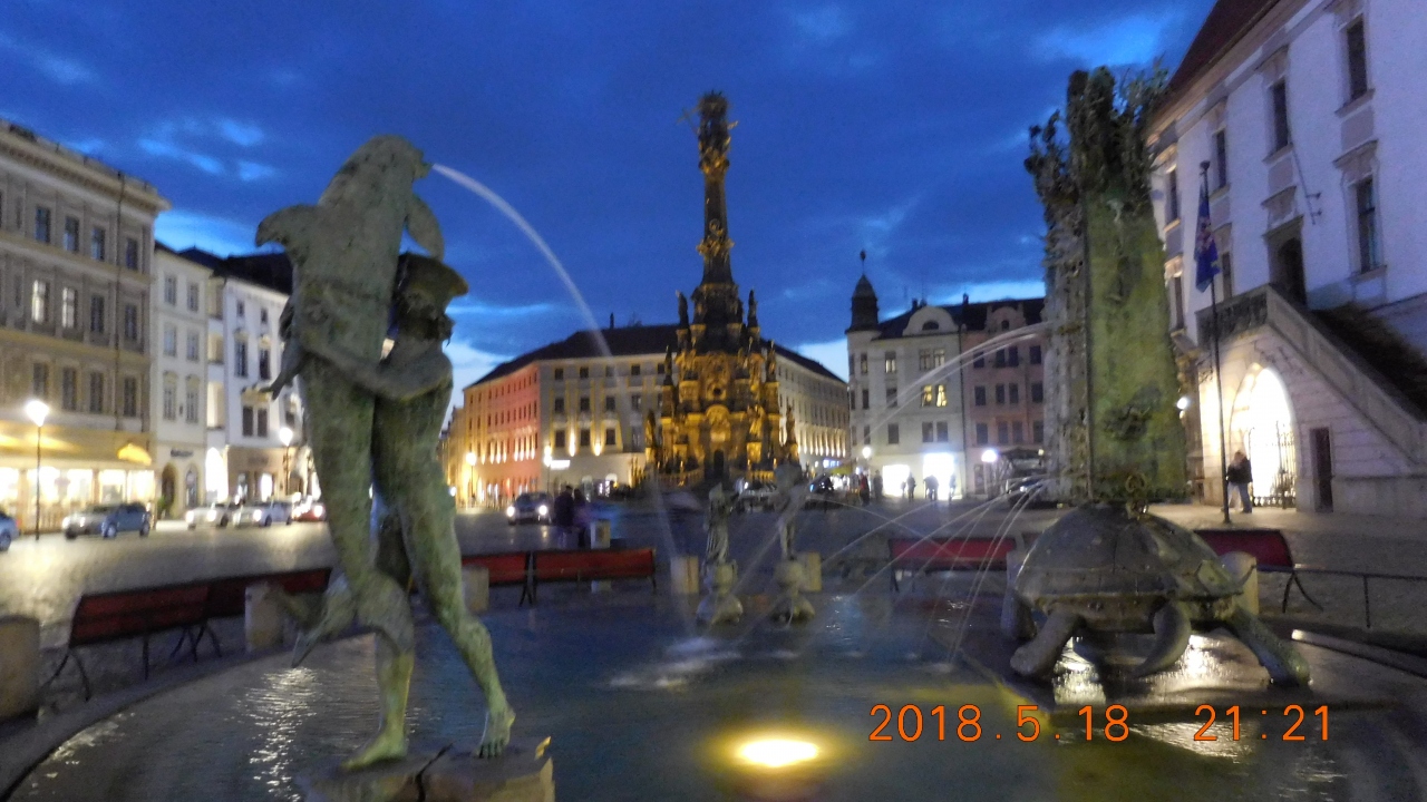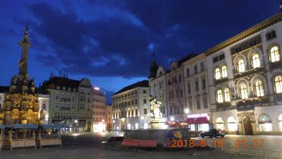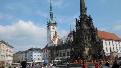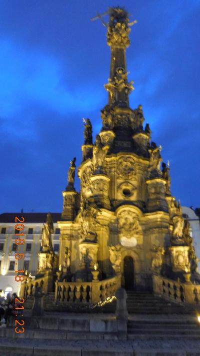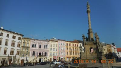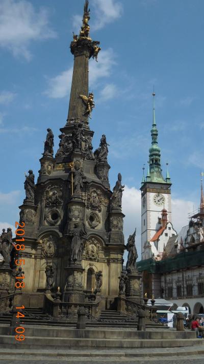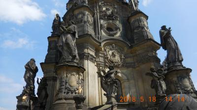ペスト終焉を記念した聖三位一体柱はヨーロッパの多くの街にありますが、ここのものは少し違います。まずその巨大さで35mもあります。バロック様式のため柱の足元から上部まで過剰な装飾で飾られておりその迫力に圧倒されます。さすが世界遺産です。