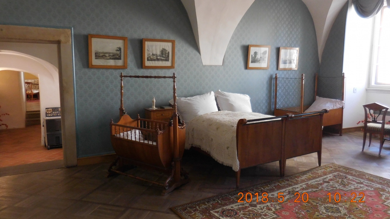 下の城は宮殿風で美しい庭園を有し、建物の前に鉄のアーチがいくつも連なりバラが植えられています。開花時期はさぞ綺麗でしょう。
