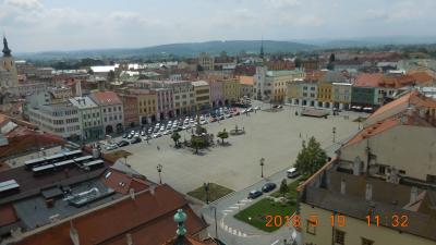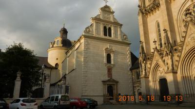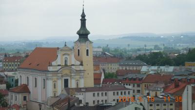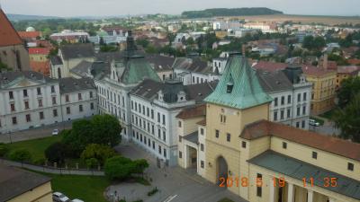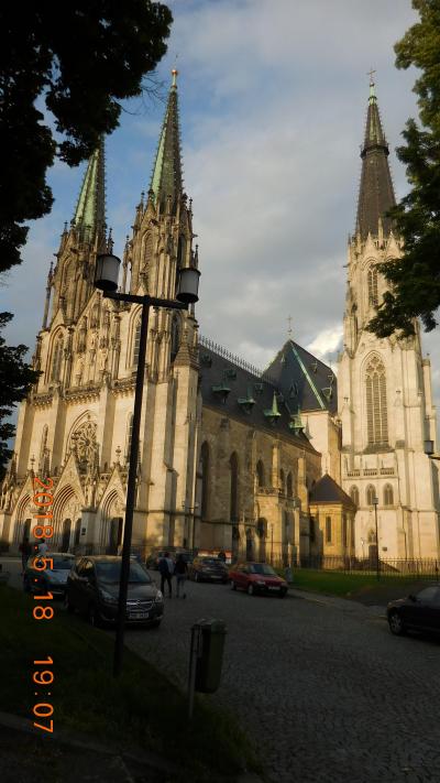 オロモウツ本駅から広い道路を旧市街に向かって歩くと高い2本の尖塔が見えます。ゴシック様式で塔の高さは100m、教会前広場から見上げると迫力があります。旧市街の入口に位置するので、ここからオロモウツ観光をスタートすると効率的に回れます。