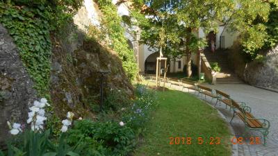 世界遺産のもう一つの庭園でフェルケー広場から500mほど西に位置する。城に隣接する庭園と違ってここは有料だが、そのくせ草が伸びて木々の手入れも行き届いているとは言い難い。5月の花の時期なのに建物近くに申し訳程度のバラ園があるだけで、野生の花が咲いている程度だった。