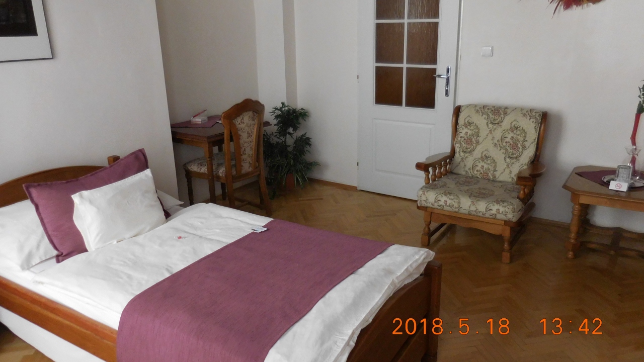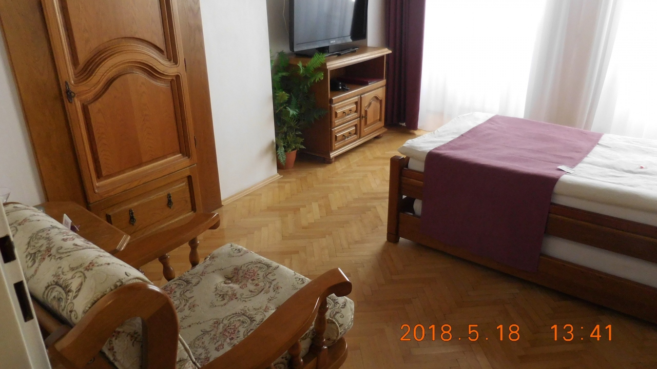 旧市街の細い路地に面したルネサンス様式の古い建物を利用したホテル。シングルルームだが十分な広さがあり古い家具が置かれて雰囲気がある。窓を開けるとすぐ目の前に聖サルカンダー礼拝堂が見える。ロケーションは最高で世界遺産のホルニー広場まで300mで、主な見どころはすべて徒歩圏内にある。ライトアップされた夜の街をマップ片手に路地から路地へと散策するのが楽しい。