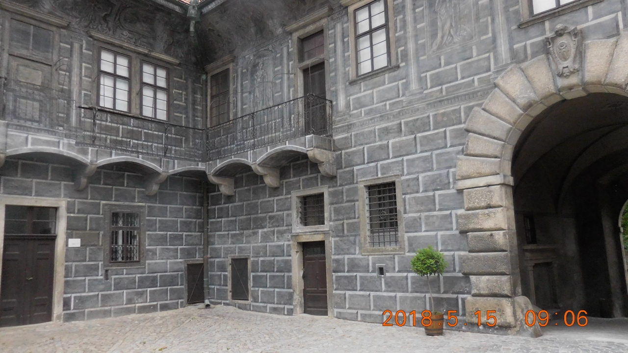 チェスケー・ブディェヨヴィツェのバスターミナルからバスで30分のPod Kostelemで下車すると丘の上に白い城館が見えるのですぐわかります。内部見学はガイドツアーを利用しなければいけませんが城の外見と中庭は自由に見学できます。