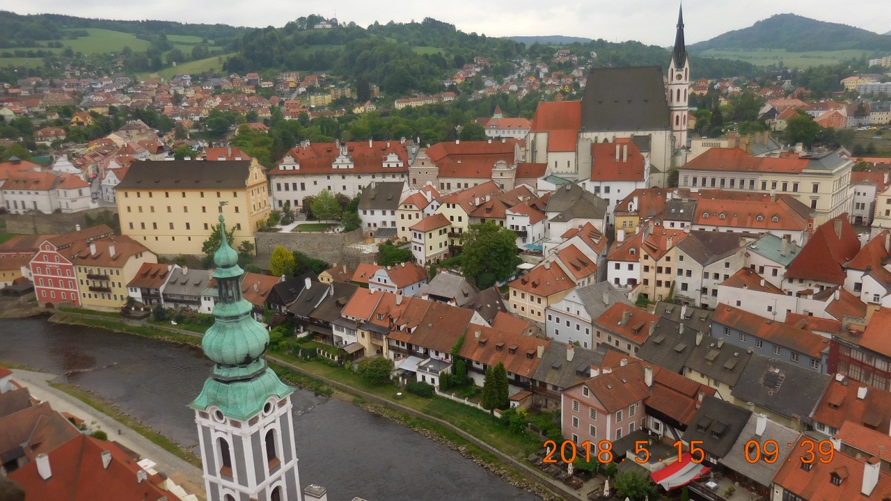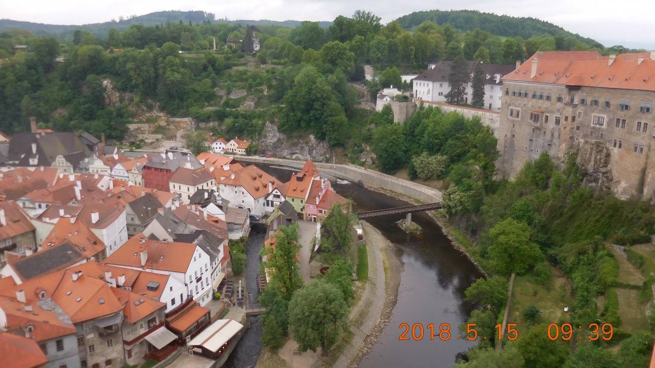 ブディェヨヴィツェ門から旧市街広場に向かう途中で渡るブルタバ川にかかる橋。ここから間近に見上げる城の塔とそれに連なるチェスキークルムロフ城は迫力がありとても美しい。皆が写真を撮るビューポイントで、ストリートミュージシャンもよくここで演奏している。