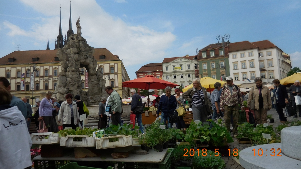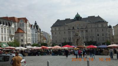 旧市街の南西にある広場で、観光案内所の入った旧市庁舎や聖ペテロ聖パウロ大聖堂もすぐ近くです。周囲を異なった様式の美しい建物が囲み、広場の中央に凝った彫刻のパルナスの噴水があります。訪れた午前中には市が立っていて多くの観光客で賑わっていました。