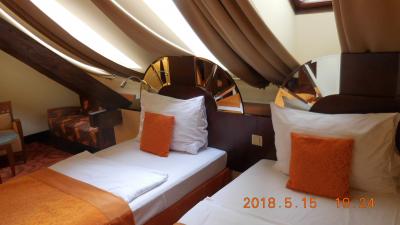 歴史的な建物3胸を使ったホテルでプシェミスル・オタカル2世広場に面しています。最上階のロフト風の部屋で雰囲気はありましたが折角の広場を窓越しに眺めることが出来なかったのが残念でした。部屋は使いやすくリノベーションされており朝食が美味しい。booking.comでどてもお得に(110ユーロ/2泊)で予約できました。