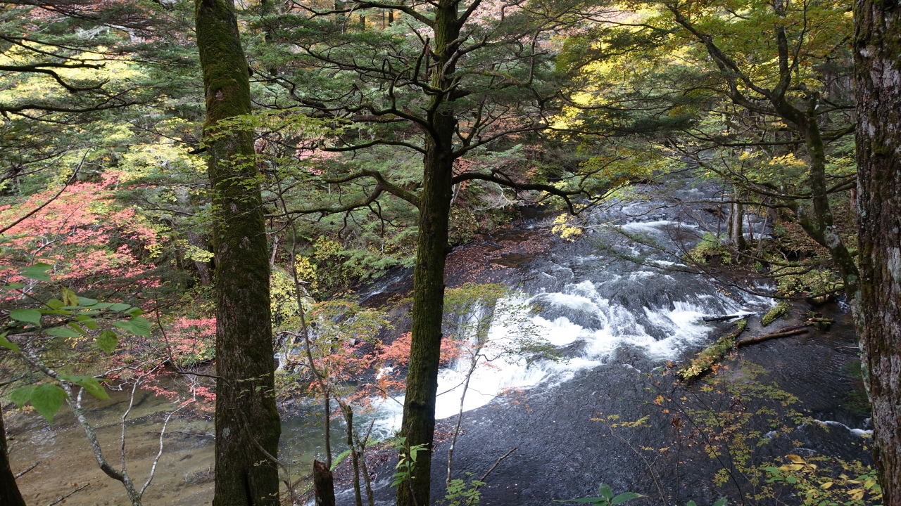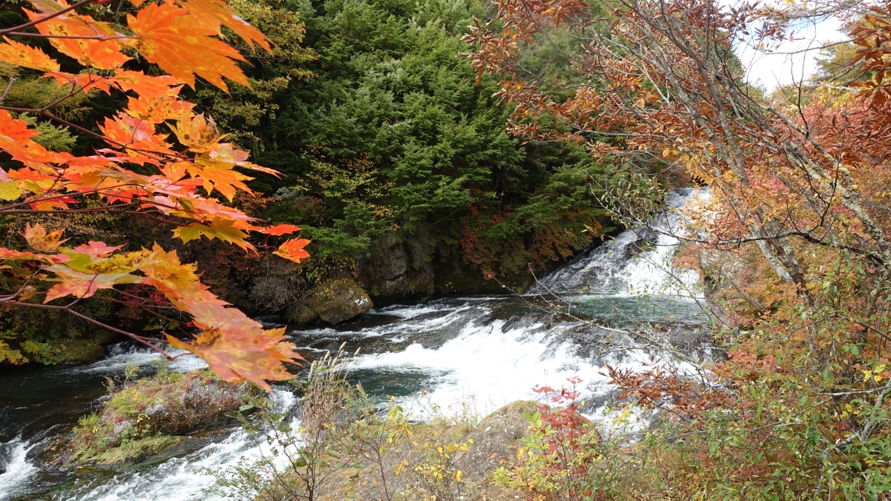 男体山の神と赤城山の神とが中禅寺湖をめぐって戦った場所とされる広大な高層湿原。湯ノ湖から流れる湯川に沿って湿原と森が広がり、特に男体山を背景にした展望台からの景色は最高。10月中旬に訪れたが湿原では草紅葉にススキがたなびき、森も緑、黄、紅と錦の装いだった。6月下旬から7月にかけてはワタスゲの白い絨毯が広がり森の新緑と併せて清々しい光景を作るらしい。日光湯元温泉から竜頭の滝まで2時間半のハイキングコースがあり、木道が整備され大きな高低差も少ないので気軽に散策できる。戦場ヶ原に並行して走る路線バスやハイキングコース近くを走る低公害バスもあるので、体力と時間に合わせて利用するといい。