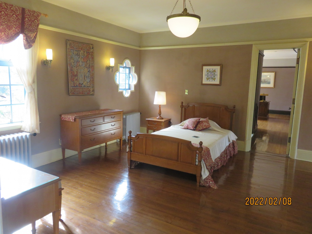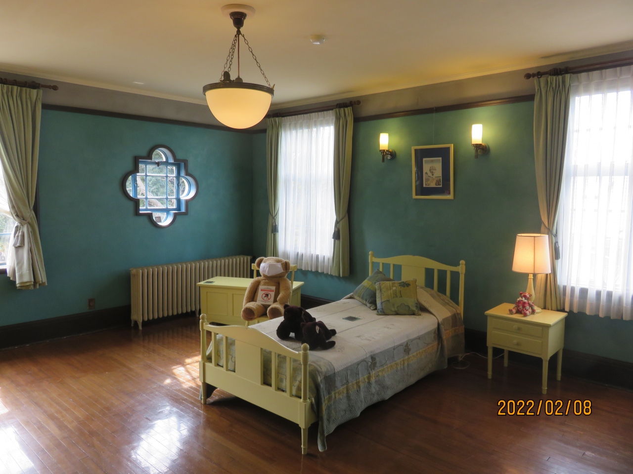 2階の客用寝室と令息寝室に誂えられた小窓は、スパニッシュ建築によく用いられる四つ葉の形状で、青色に統一された部屋によく合って、美しい造りの部屋でした。