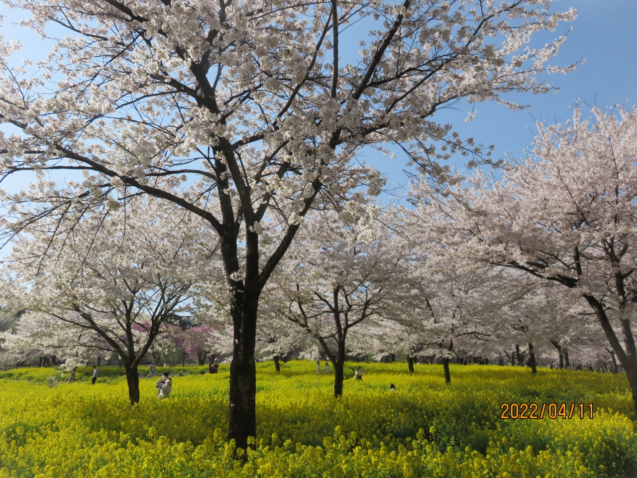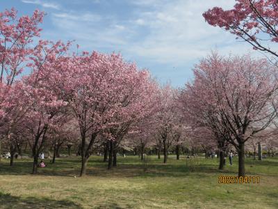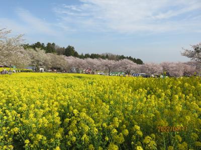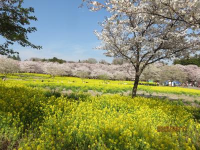 4月11日に訪れた時には、もう散り始めていましたが、満開の桜と桜吹雪の美しい花見を堪能できました。 公園内には他に37種類の様々な桜が咲いて、同時に咲いた菜の花とのコラボレーションが素晴らしかったです。他にも芝桜も植栽されています。
