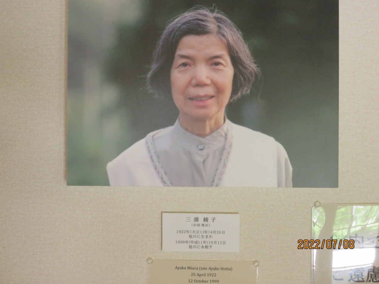 旭川市から国道40号で約30Km程のところにある記念館は、JR塩狩駅から歩いて数分上がったところに建っていました。周りには駅以外ホステルが1軒建つのみで、木々に囲まれた静かな環境にあります。夫である三浦光世氏と新婚当時住んだ旭川の建屋をこの地に再現したもので、代表作である氷点や塩狩峠などの代表作がこの家から生まれました。