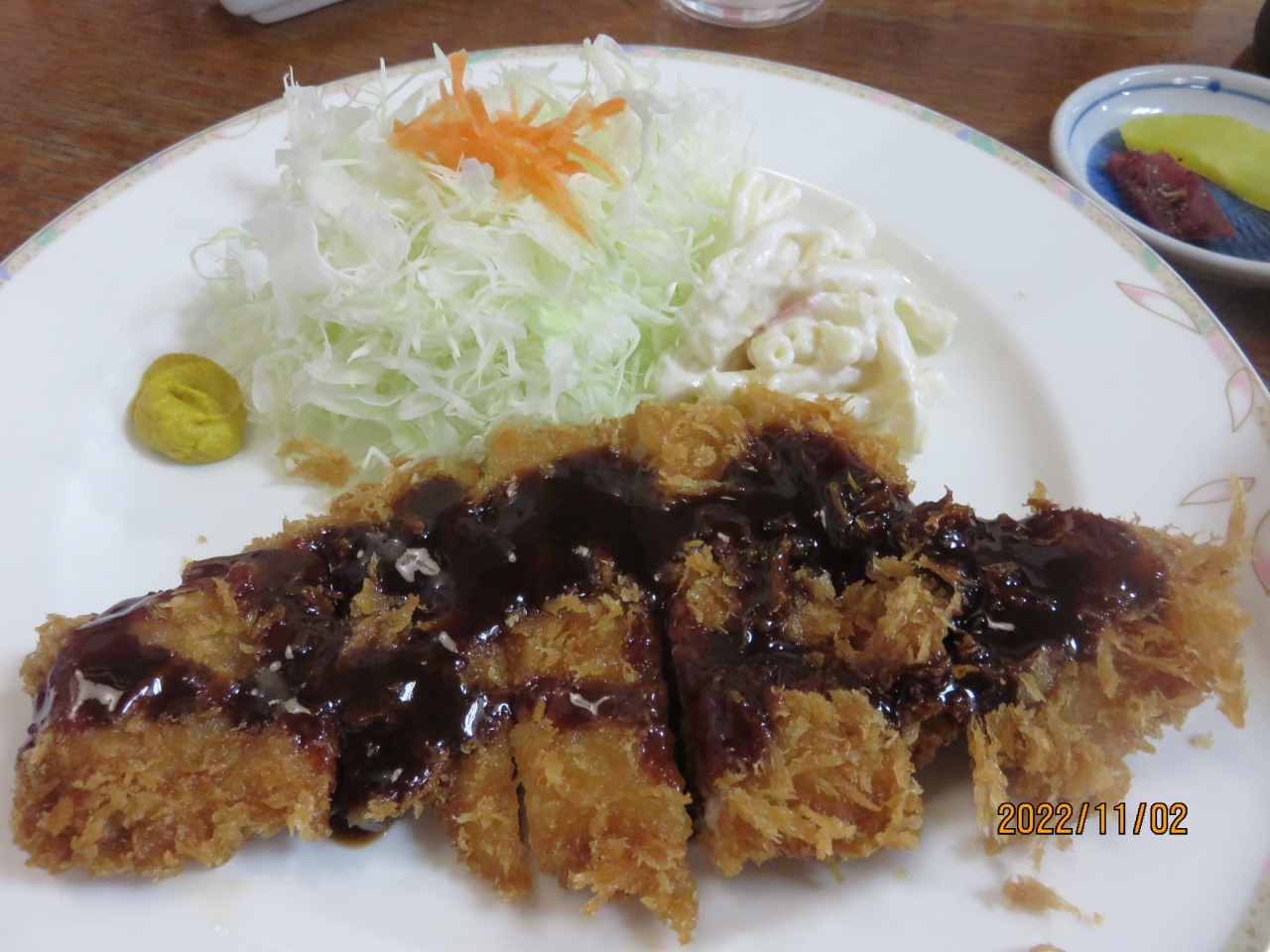 揚げたとんかつを、再度高温の釜焼きして余分な油や脂肪を落としたヘルシーなとんかつなんだそうですが、ロースの脂身が好きなので普通のロースカツをオーダーしました。