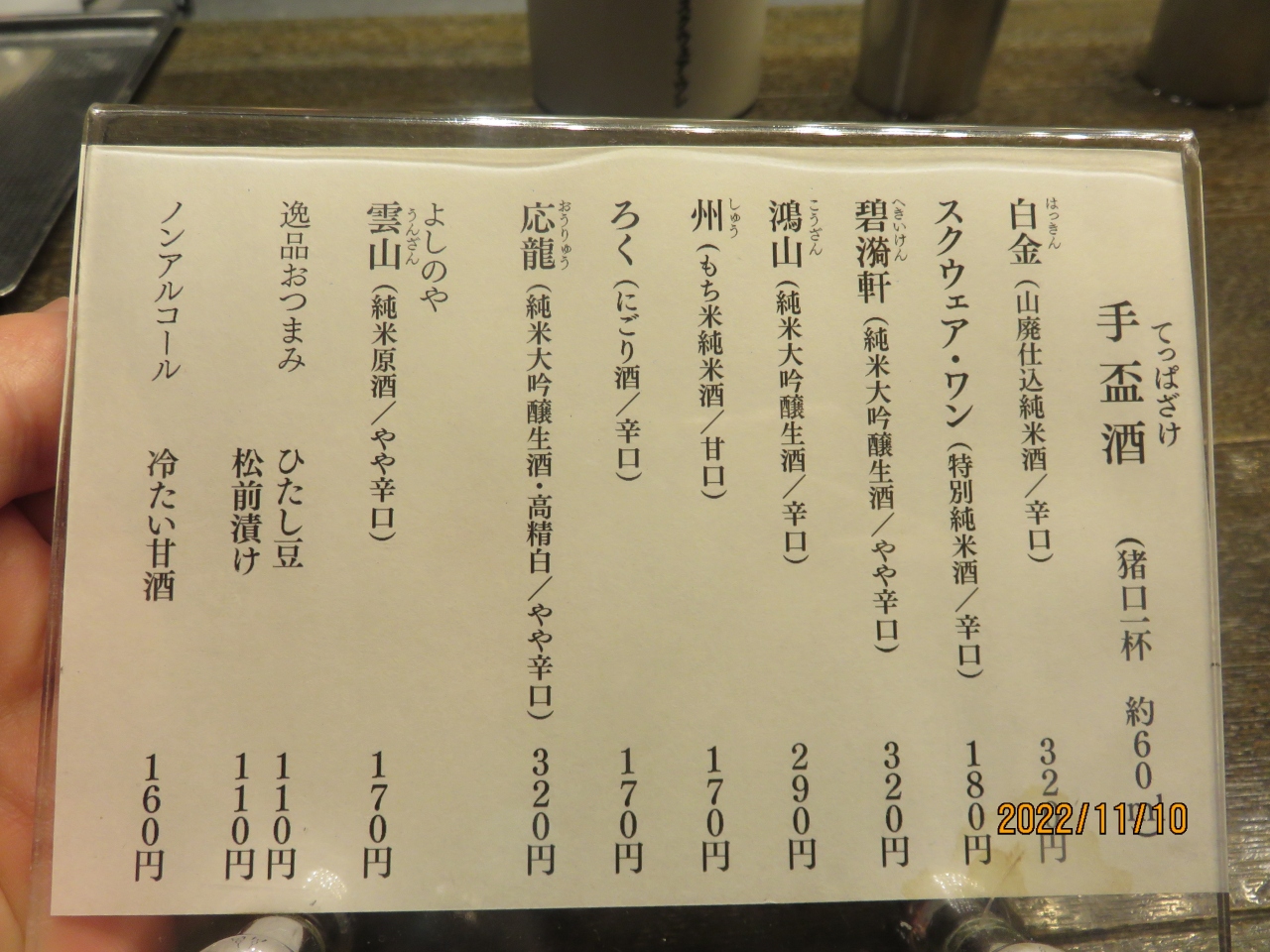 山廃仕込みの白金も試飲してみましたが、更に辛口のコク深い味わいのお酒でした。