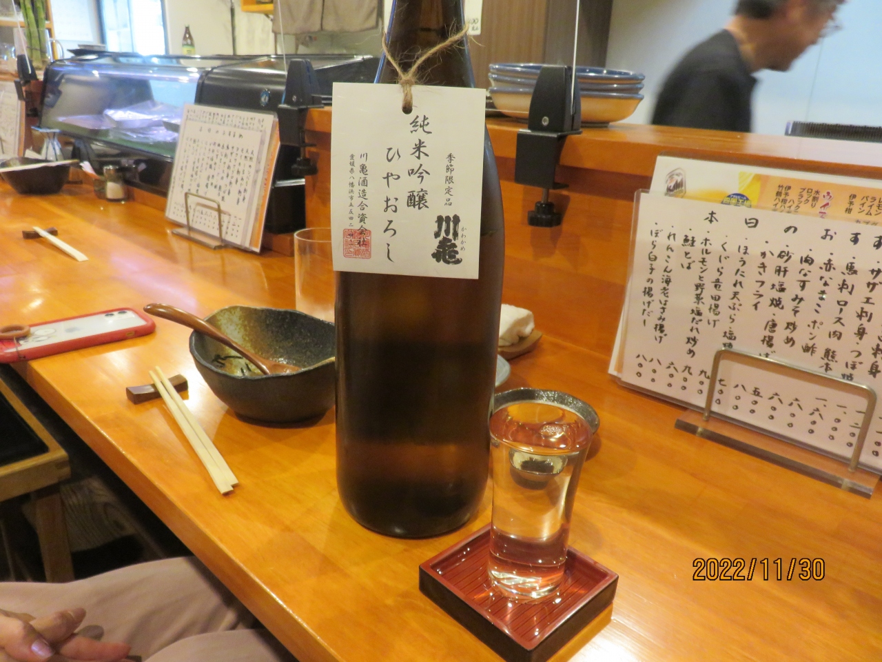 ご主人と奥さん(だと思う)のお二人で日本酒を中心にしたお酒の品揃えと、四国の食材を使った料理を提供してくれます。 お酒は他に焼酎やウィスキーなどもあり、妻はすだちのハイボールをオーダーしていました。