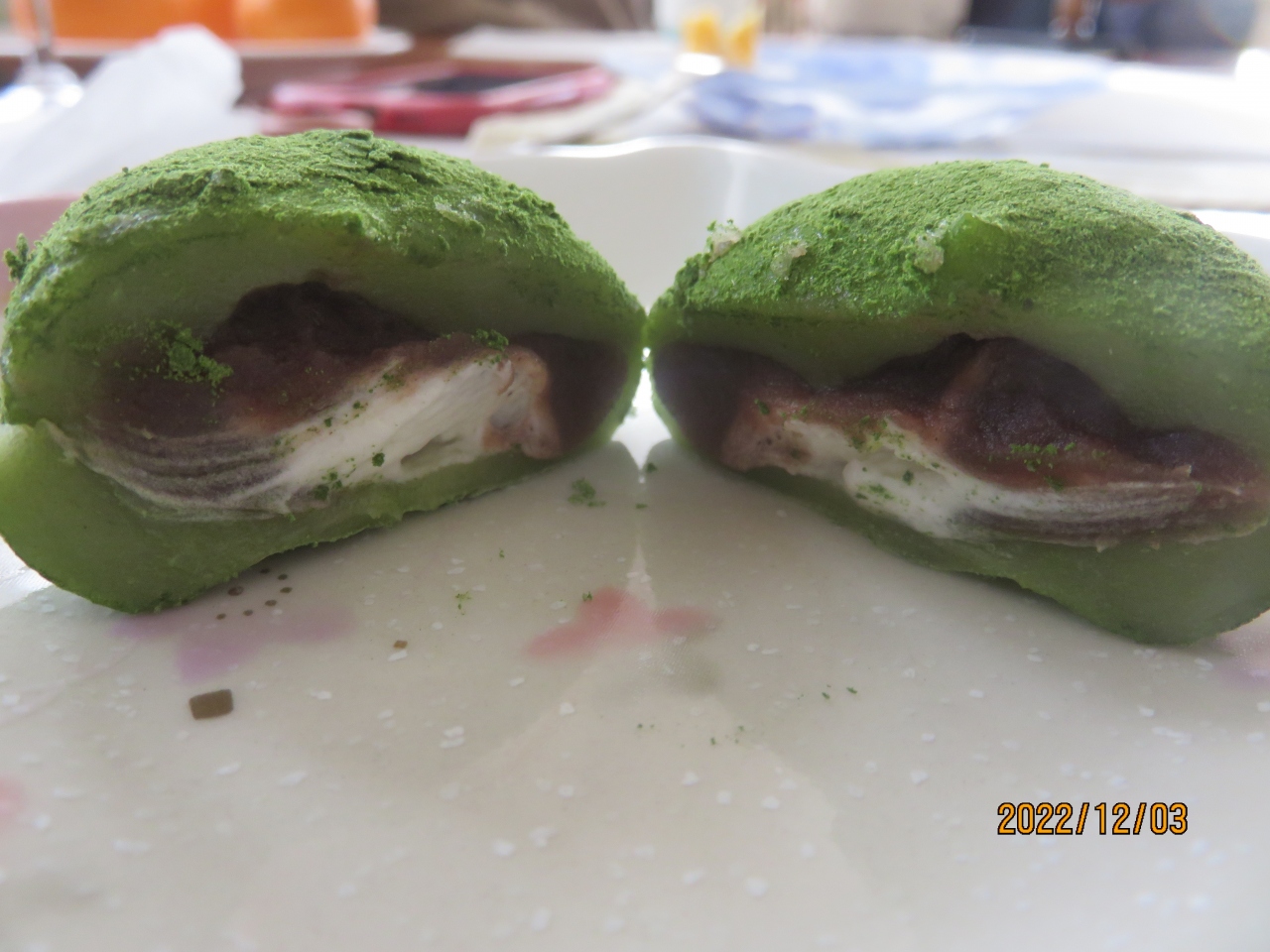 抹茶と生クリームとこしあんの絶妙な味わいの美味しい大福でした
