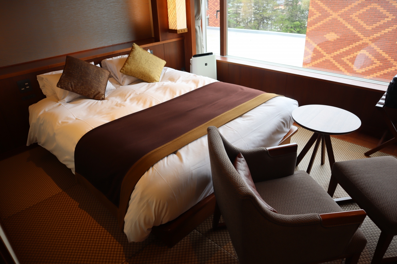 宿泊した部屋は、ガーデンウィング棟ですが、残念ながら中庭とは反対側に位置していた為庭は眺められませんでしたが、大きな窓から帯広市街地を望むことができ快適でした。