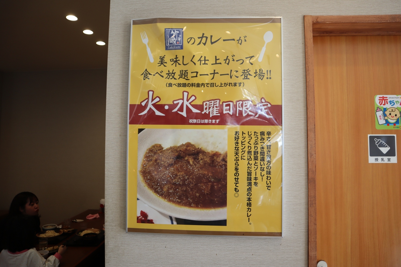 火、水曜日はカレーも食べ放題とのことです(そんなに食べられないけど…、)