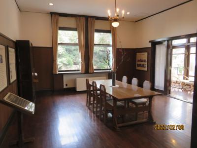 白亜のモダンな洋館 2階の資料展示で山手の洋館について学べます