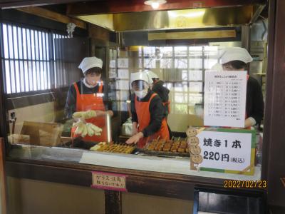 群馬県のソウルフードとも言われ、小麦粉に米麹を入れて発酵させたまんじゅうに赤味噌とザラメで作ったタレを何度も塗りながら香ばしく焼き上げています。 麹の豊かな香りとタレの香ばしさで本当に美味しいまんじゅうです。 価格は一串4個で220円とリーズナブル。