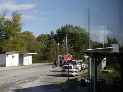 クロアチアとボスニアの国境.パスポートを預けて手続きしてもらってるとこ...